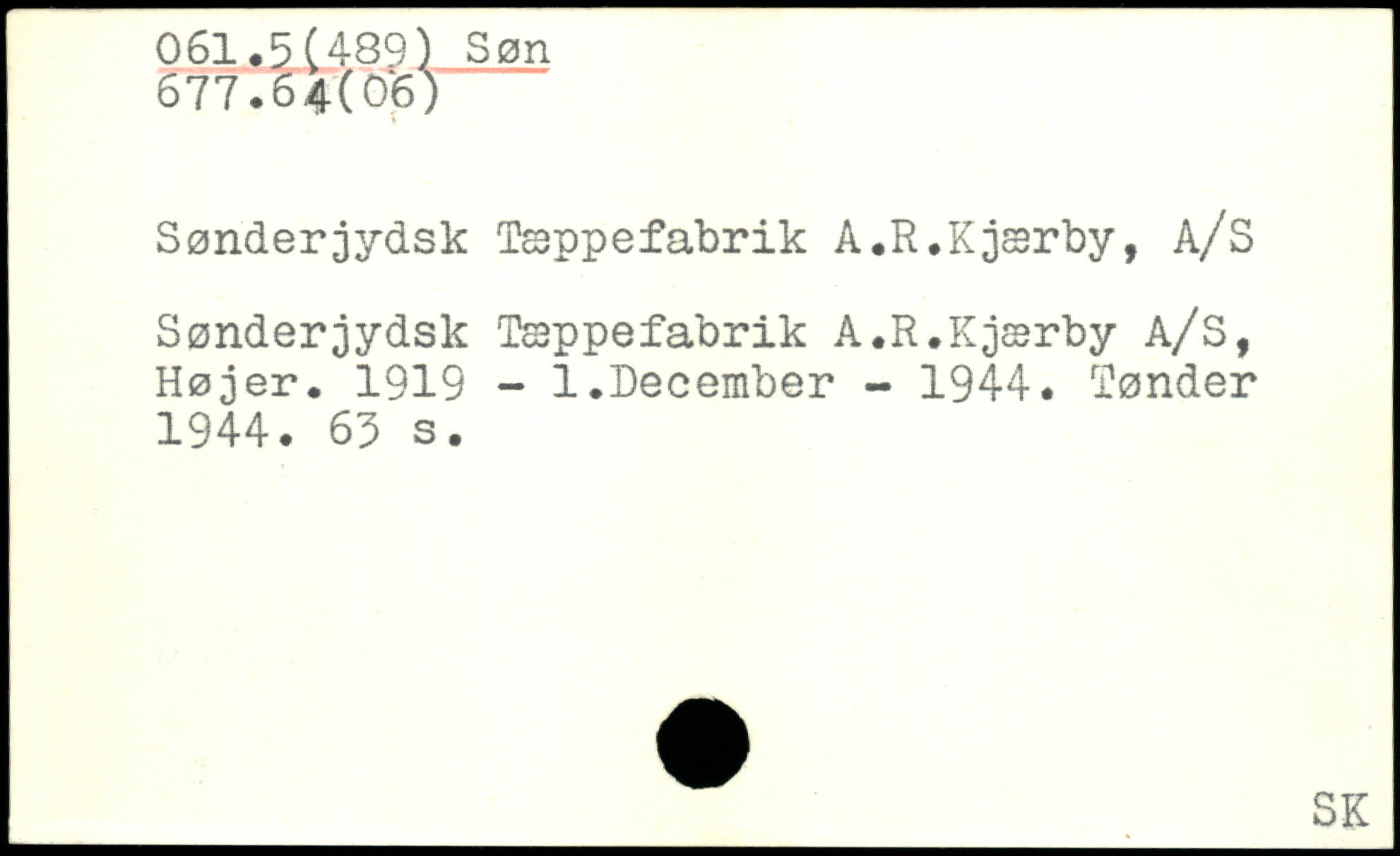 Sønderjydsk Tappefabrik A.R.Kjsrby, A/S Sønderjydsk Tappefabrik A.R.Kjsrby A/S, Højer. 1919 - 1.December - 1944. Tønder 1944.