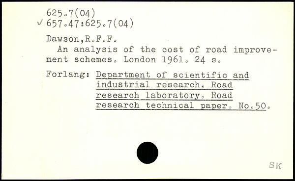 Dawson,RoFoF^ An analysis of the cost of road improvement schemeso