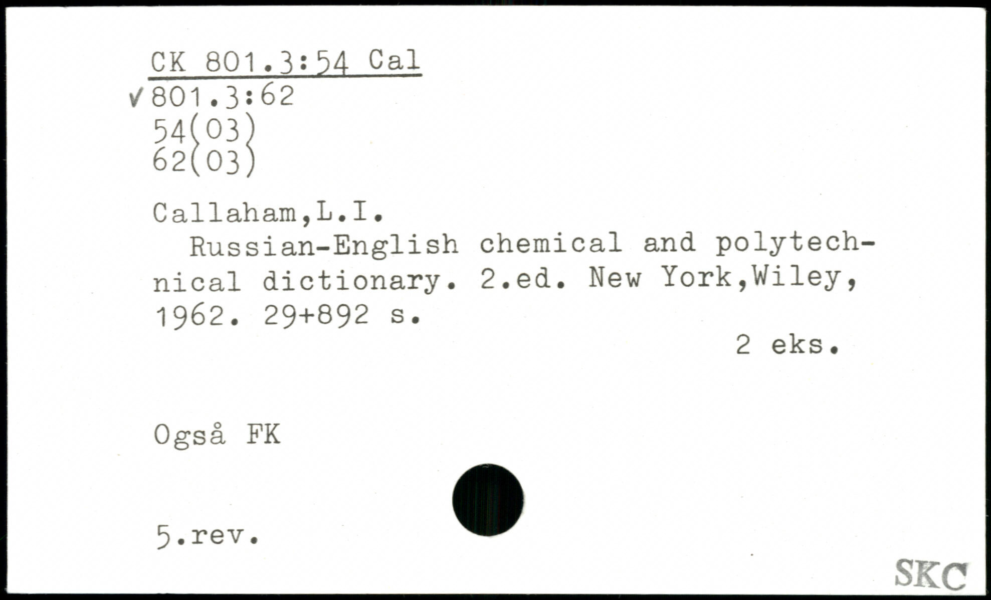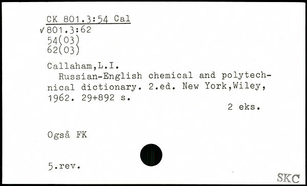 Call ah am , 1. . I. Russian-English chemical and polytech-nical dictionary.