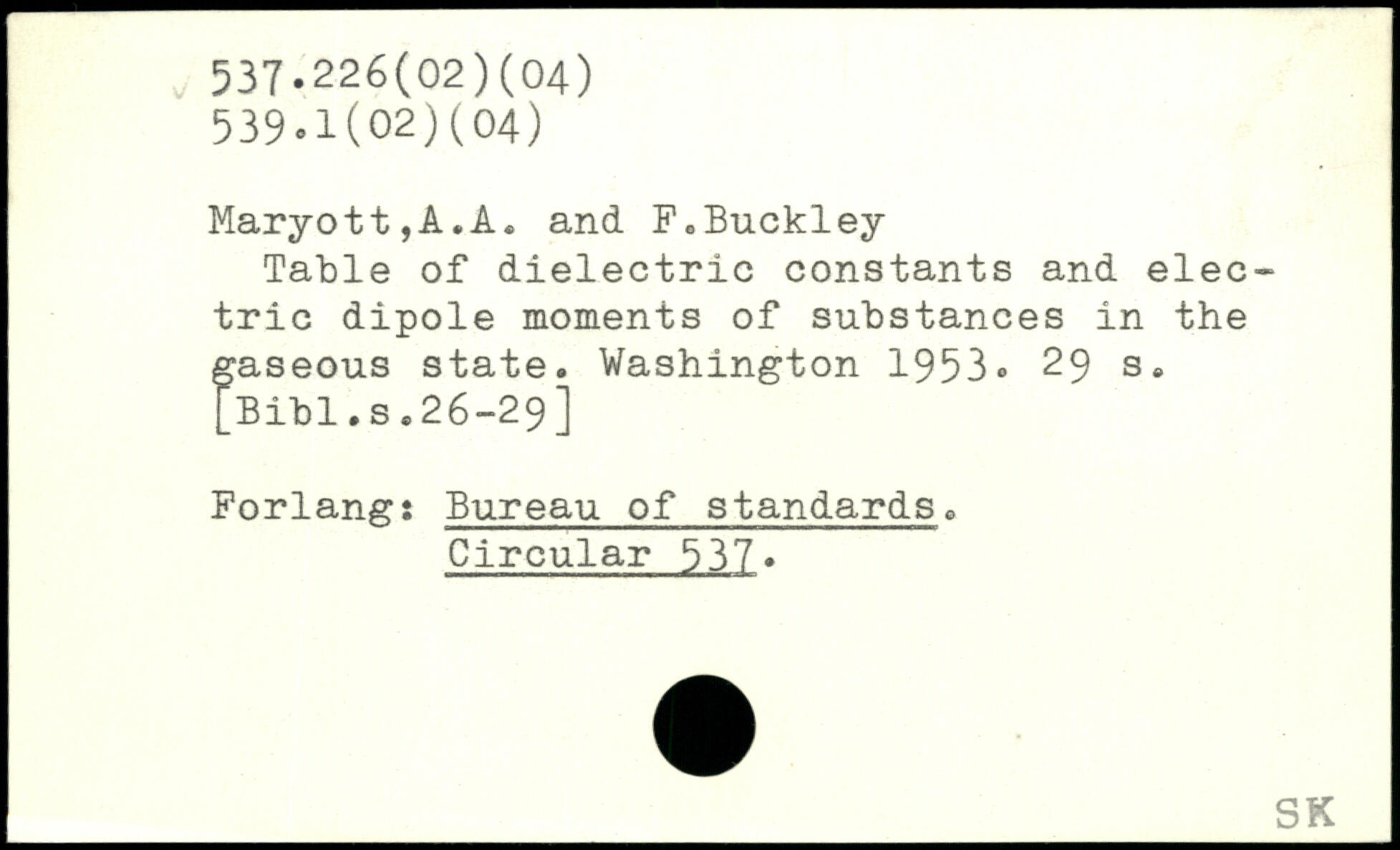 Forfatter: A.A. Maryott, F. Buckley