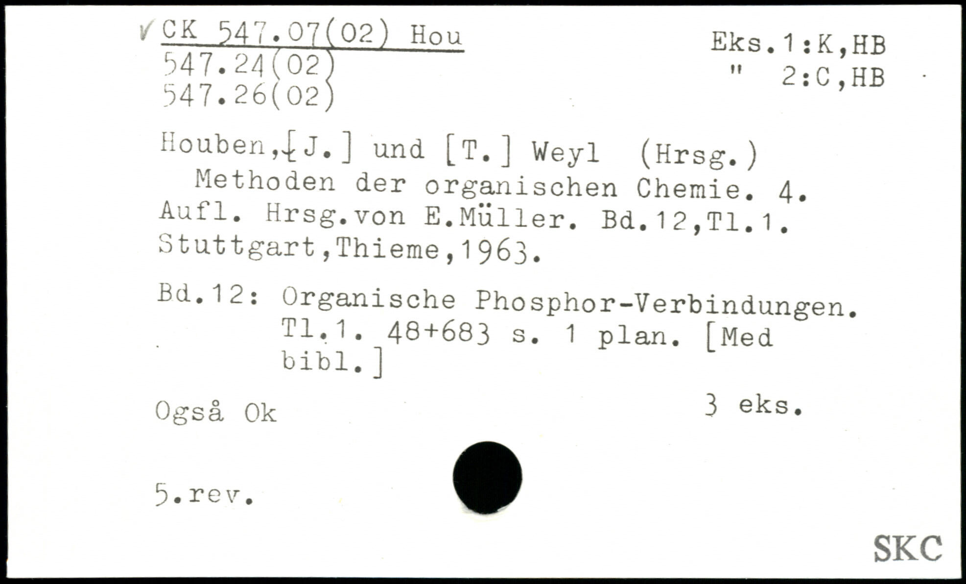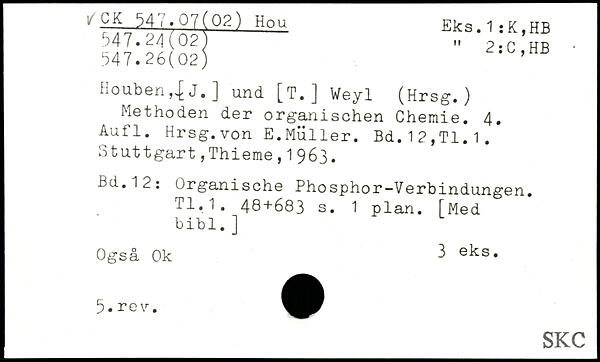 Houben,.[ J. ] und [T.] Weyl (Hrsg.) Methoden der organischen Chemie.