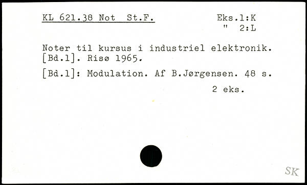 Noter til kursus i industriel elektronik. [Bd.l]. Risø 1965.