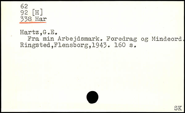 Pra min Arbejdsmark, Poredrag og Mindeord, Ringsted,Plensborg,1943. 160 s