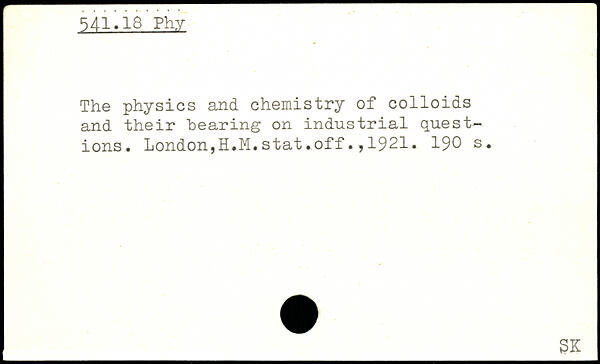 The physics and chemistry of colloids and their hearing on industrial questions. London,H.M.stat.off.,1921.