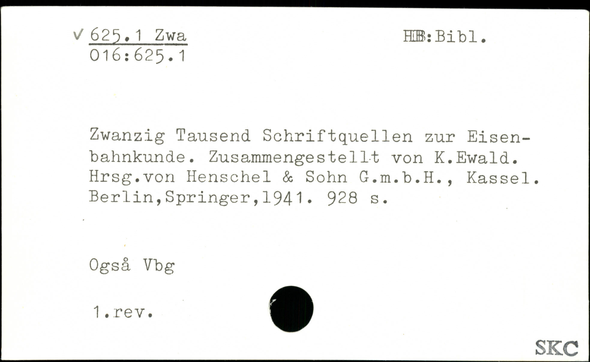 Zwanzig Tausend Schriftquellen zur Eisenbahnkunde. Zusammengestellt von K.Ewald. Hrsg.von Henschel & Sohn G.m.b.H., Kassel.