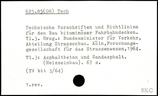 Technische Vorschriften und Richtlinien für den Bau bituminöser Fahrbahndecken. TI.3, Hrsg.: Bundesminister für Verkehr, Abteilung Strassenbau. Köln,Forschungsgesellschaft für das Strassenwesen,19&4. TI.3: Asphaltbeton und Sandasphalt. (Heisseinbau).