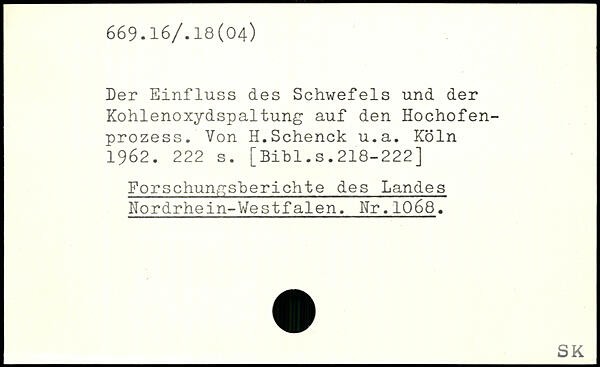 Der Einfluss des Schwefels und der Kohlenoxydspaltung auf den Hochofenprozess. Von H.Schenck u.a.