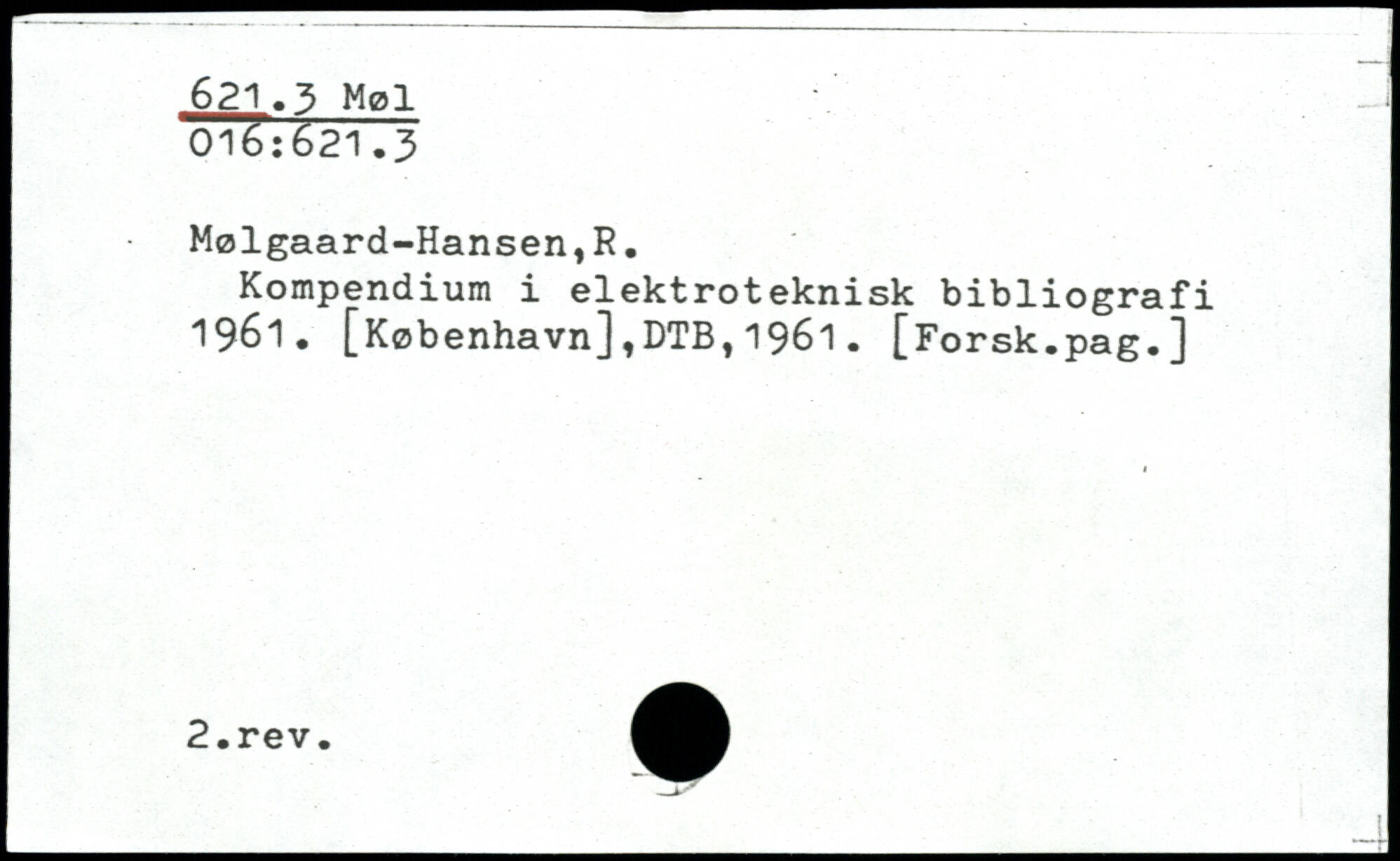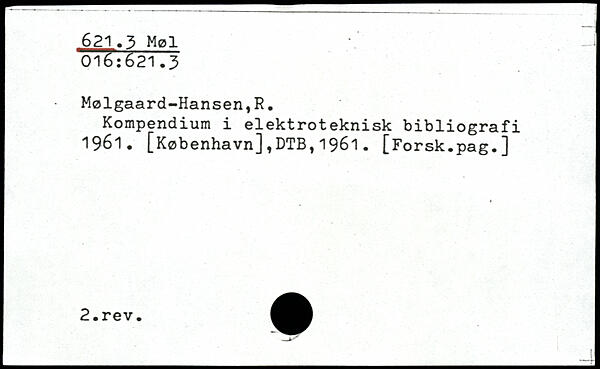 Kompendium i elektroteknisk bibliografi 1961. [København],DTB,1961.