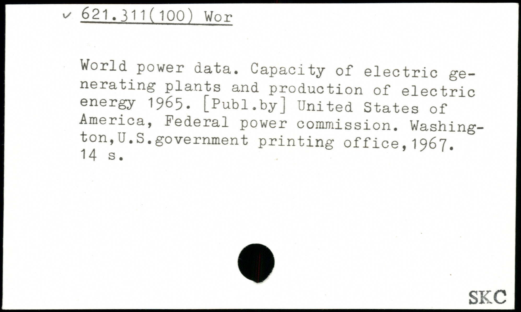 World power data. Capacity of electric generating plants and production of electric energy 1965.