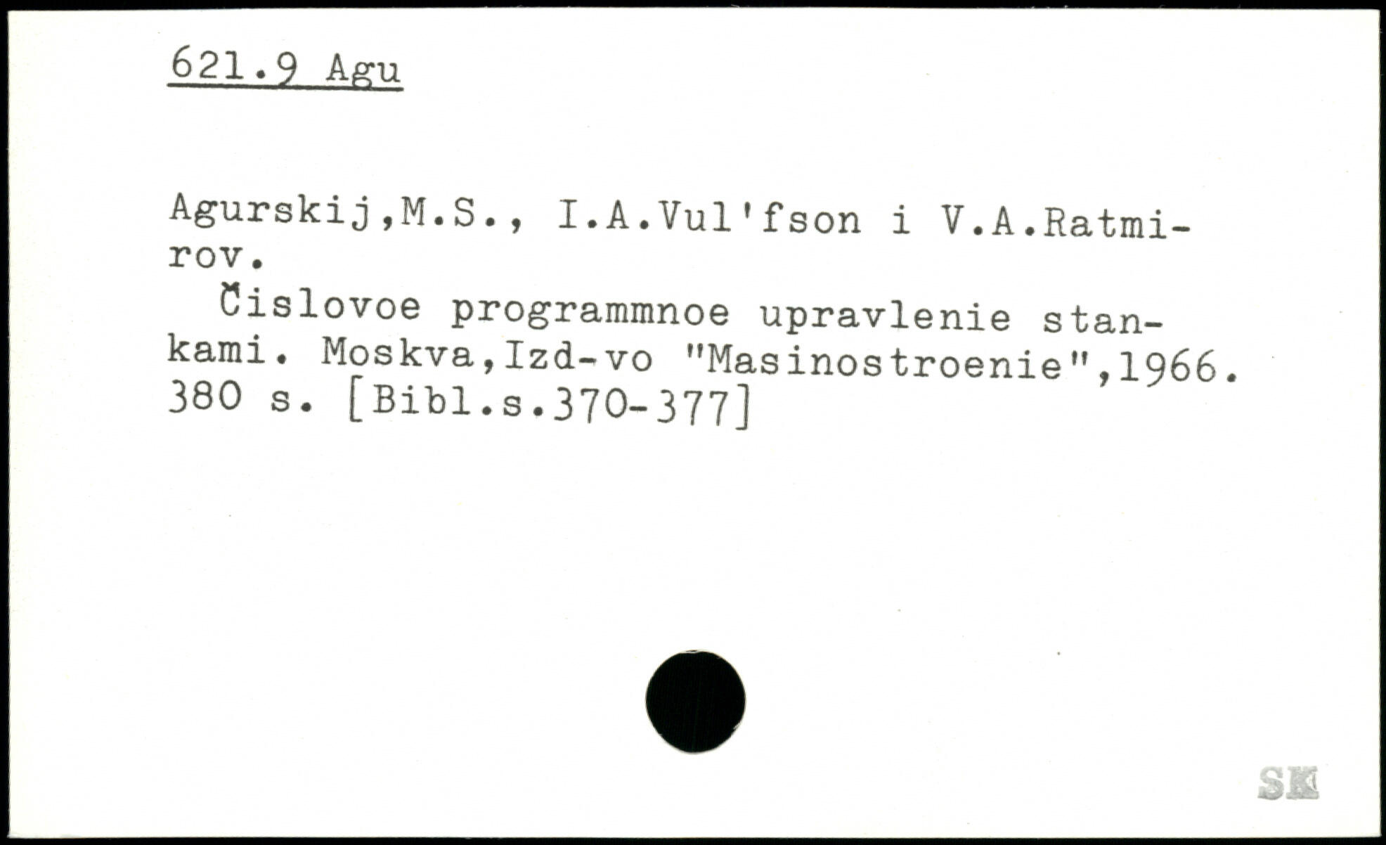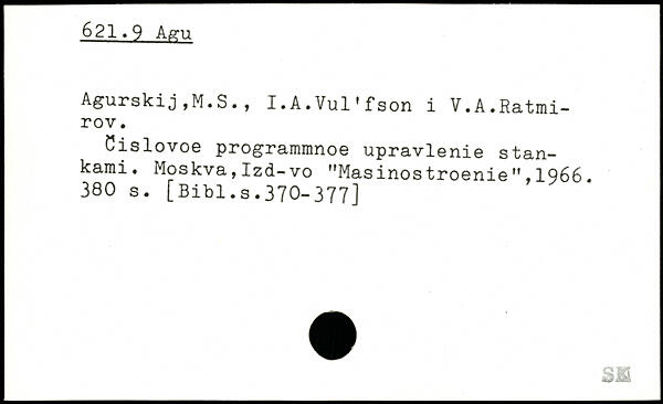 Agurskij,M.S., I.A.Vul'fson i V.A.Ratmi-rov. Cislovoe programmnoe upravlenie stan-kami. Moskva,Izd-vo "MasinostroenieM 1966.