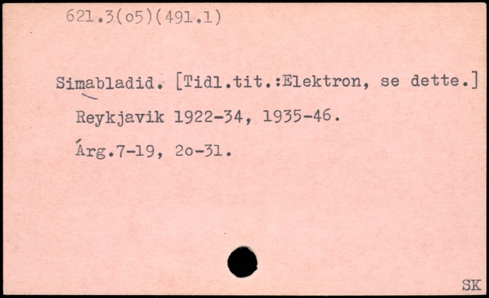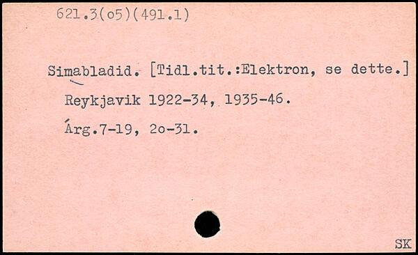 Simatladid. [Tidl.tit.:Elektron, se dette.] Reykjavik 1922-34, 1935-46. Arg.7-19, 20-31.