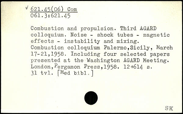 Combustion and propulsion. Third AGARD colloquium. Noise - shock tubes - magnetic effects - instability and mixing. Combustion colloquium Palermo,Sicily, March 17-21,1950. Including four selected papers presented at the Washington AGARD Meeting.