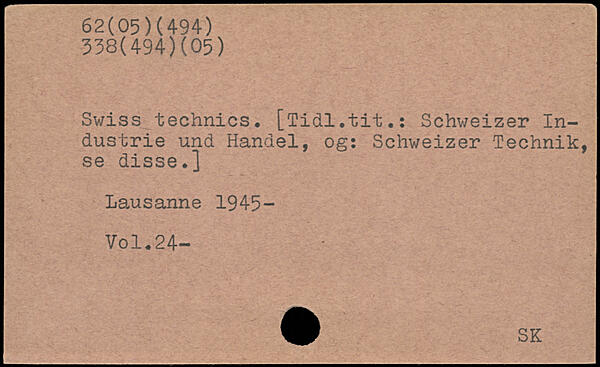 Swiss technics. [Tidl.tit.: Schweizer Industrie und Handel, og: Schweizer Technik, se disse.] Lausanne 1945-