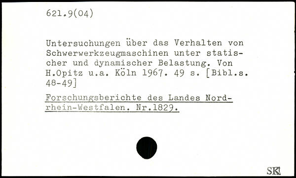 Untersuchungen über das Verhalten von Schwerwerkzeugmaschinen unter statischer und dynamischer Belastung. Von H.Opitz u.a.