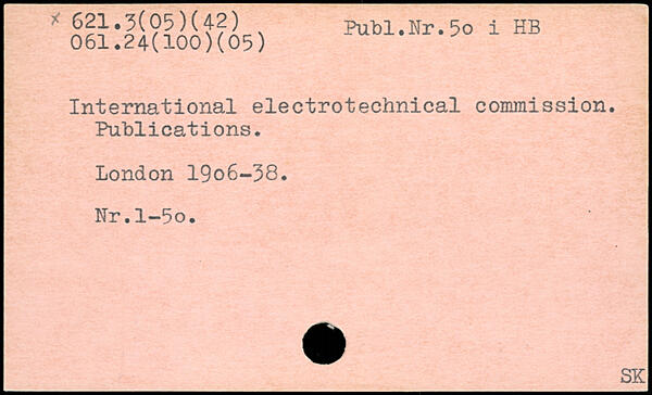 International electrotechnical commission. Publications. London 19o6-38. Nr.l-5o.