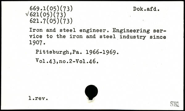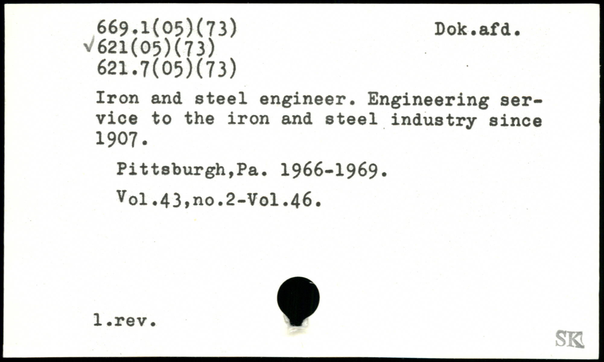Iron and steel engineer. Engineering service to the iron and steel industry since 1907. Pittsburgh,Pa. 1966-1969.
