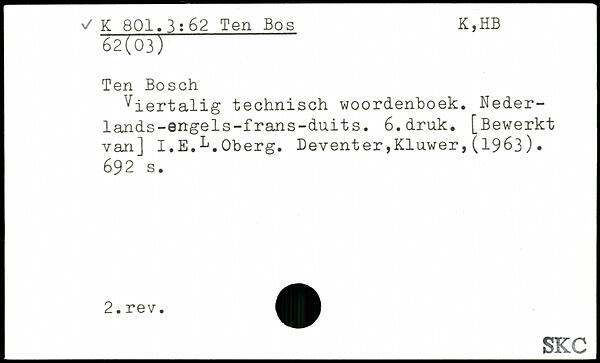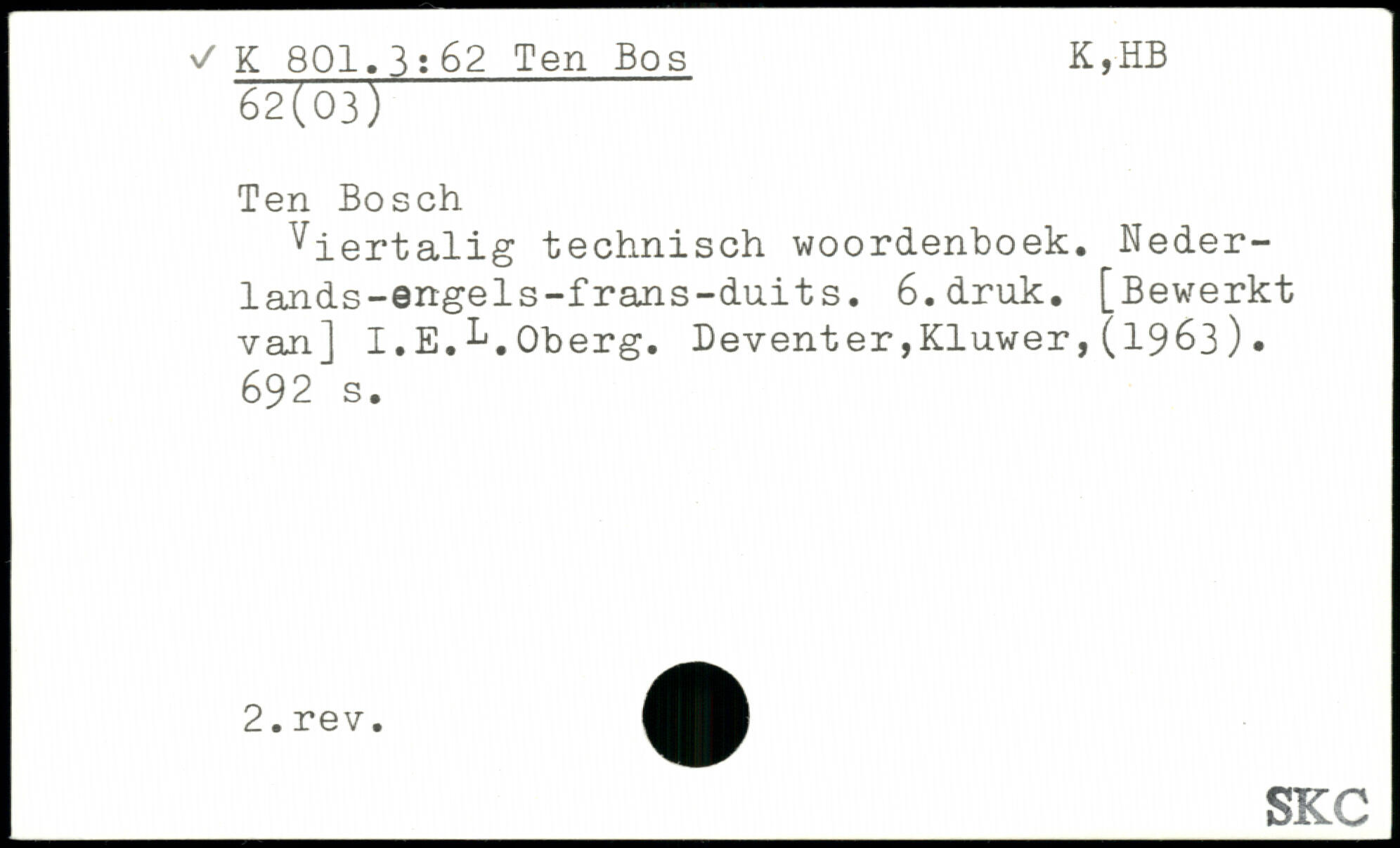 ^iertalig technisch woordenboek. Neder-lands-errgels-frans-duits. 6.druk.