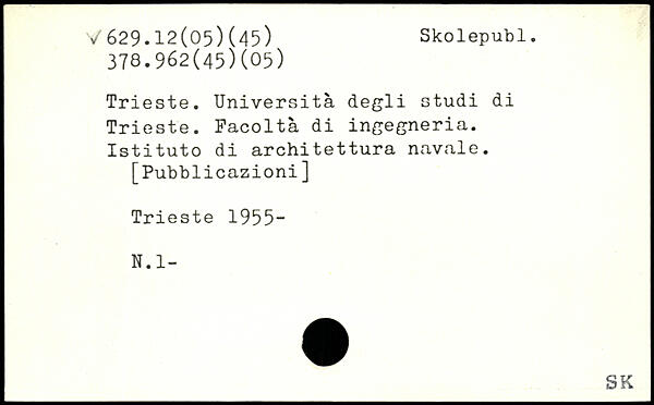 Trieste. Università degli studi di Trieste. Facoltà di ingegneria. Istituto di architettura navale. [Pubblicazioni] Trieste 1955“