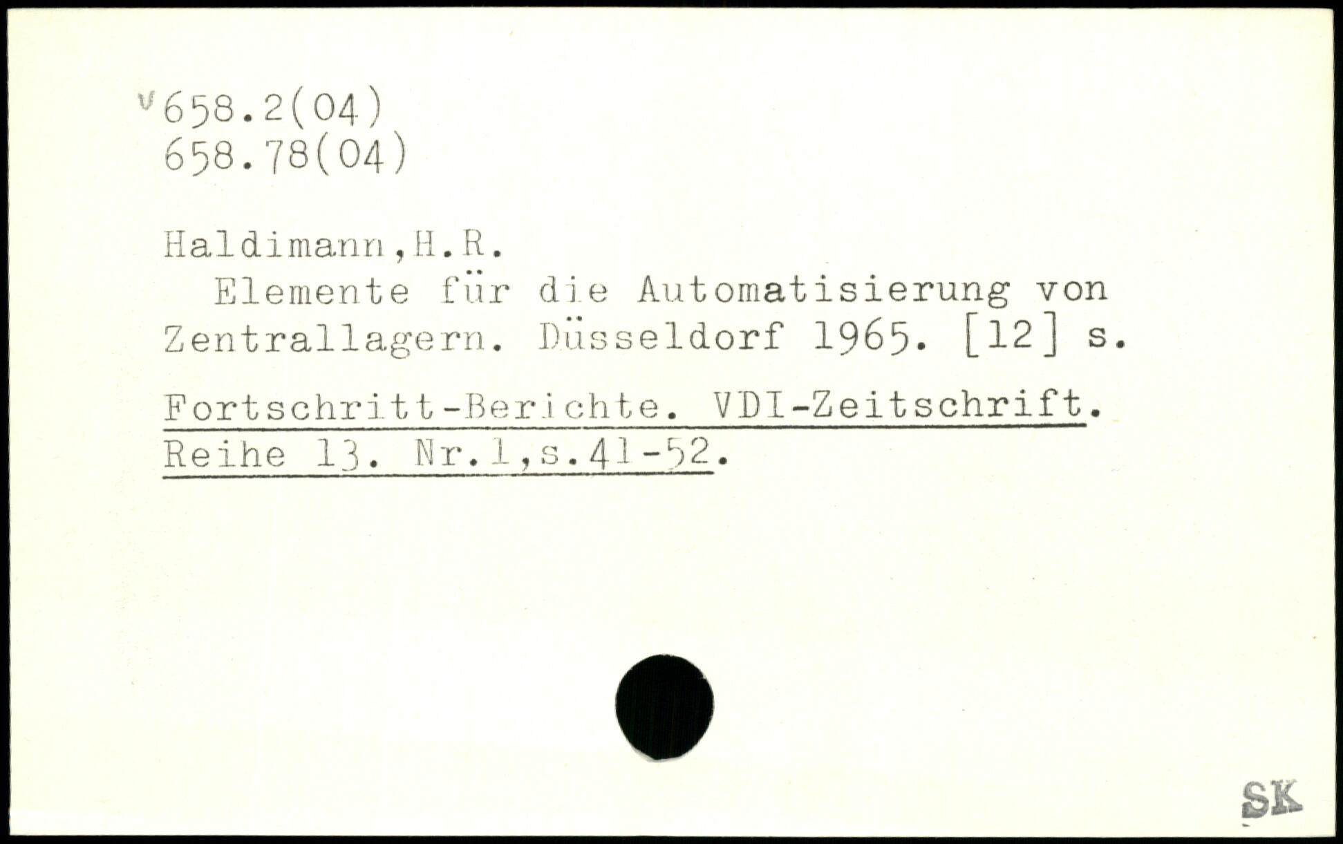 Elemente für die Automatisierung von Zentrallagern. Düsseldorf 1965- Fortschritt-Ber.i chte. VDl-Zeitschrift. Reihe 13. Kr.1,s.4^~52.