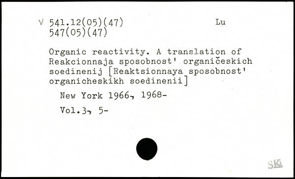 Organic reactivity. A translation of Reakcionnaja sposobnost. organiceskich soedinenij [Reaktsionnaya sposobnost' organicheskikh soedinenii]