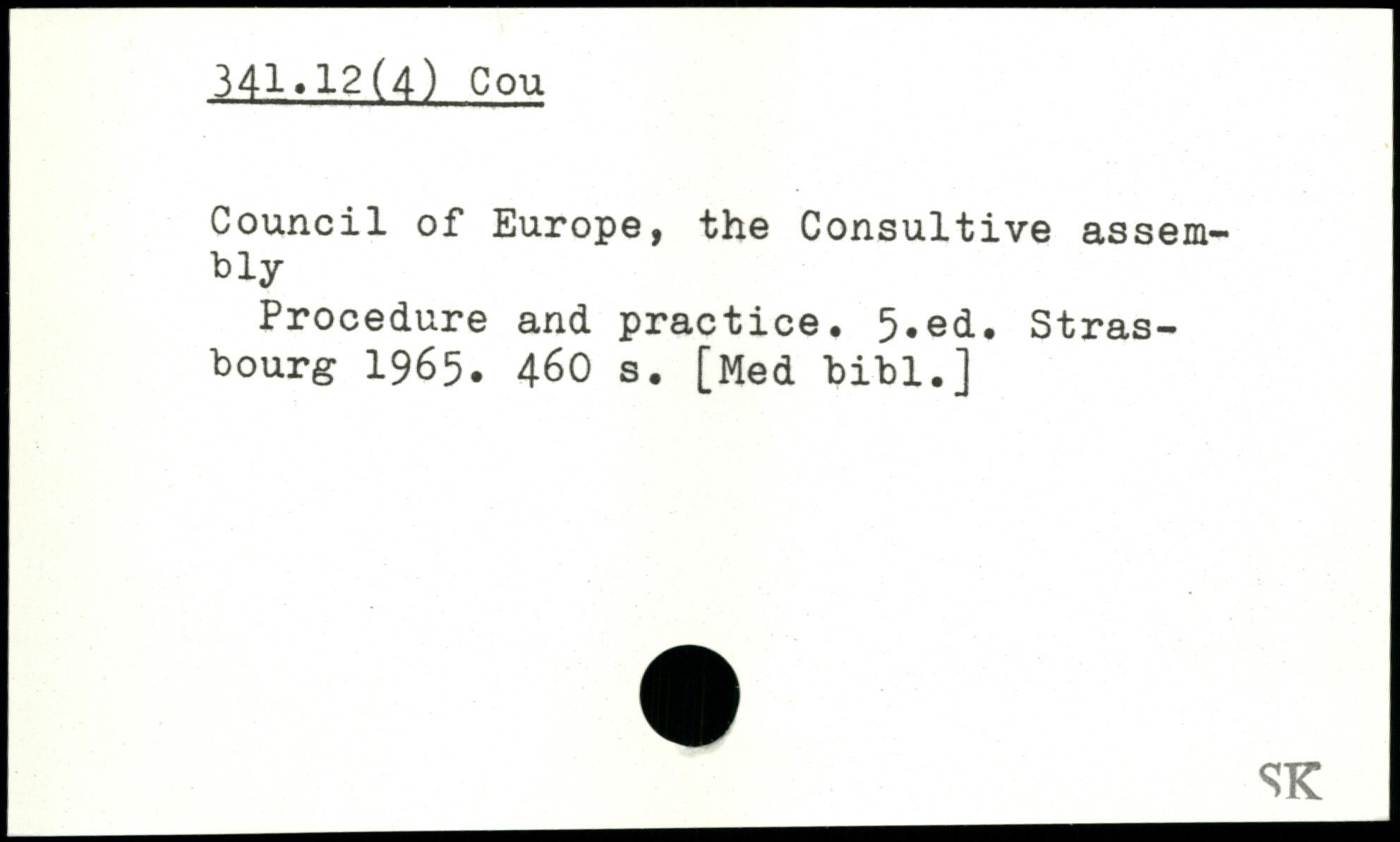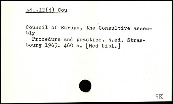 Council of Europe, the Consultive assembly Procedure and practice.