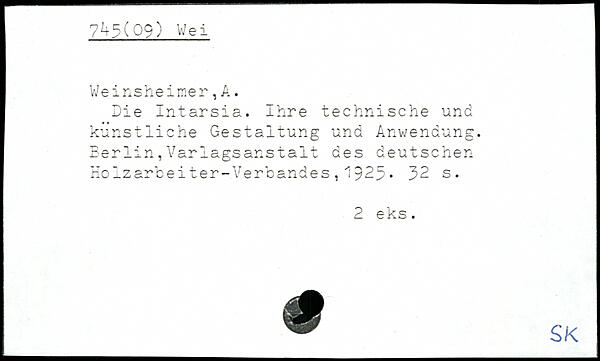 Die Intarsia. Ihre technische und ! künstliche Gestaltung und Anwendung.