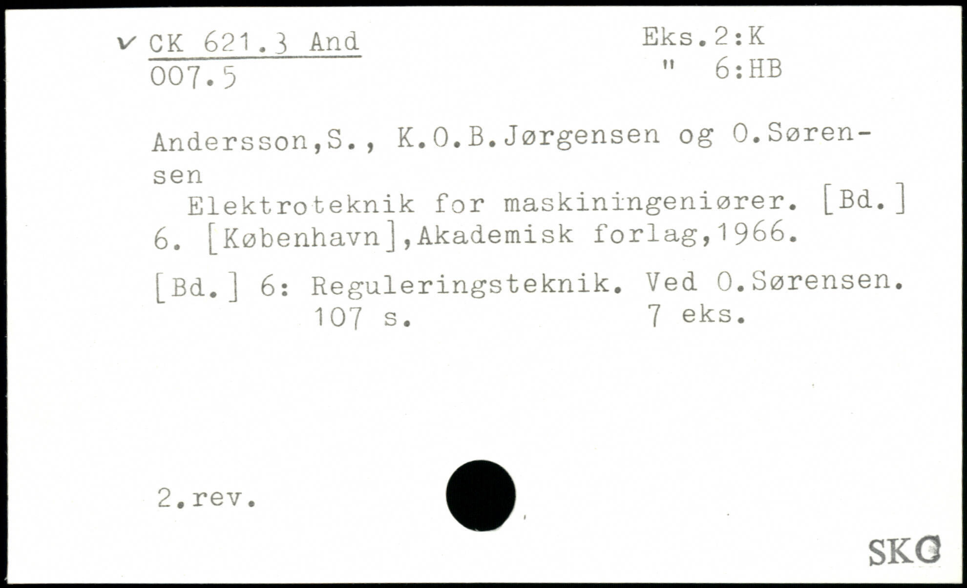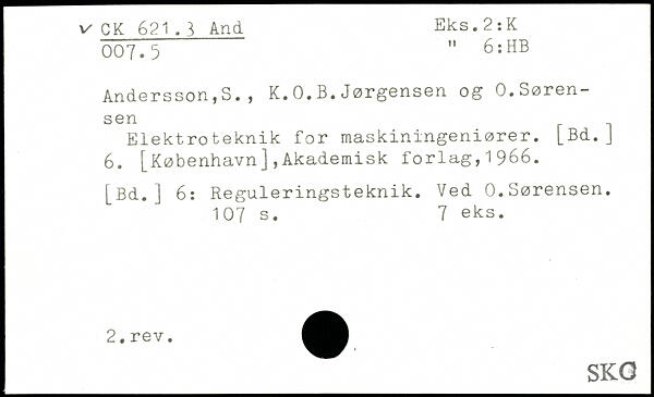 Elektroteknik for maskiningeniører. [Bd. J 6. [København],Akademisk forlag,1966. [Bd.] 6: Reguleringsteknik. Ved 0.Sørensen.