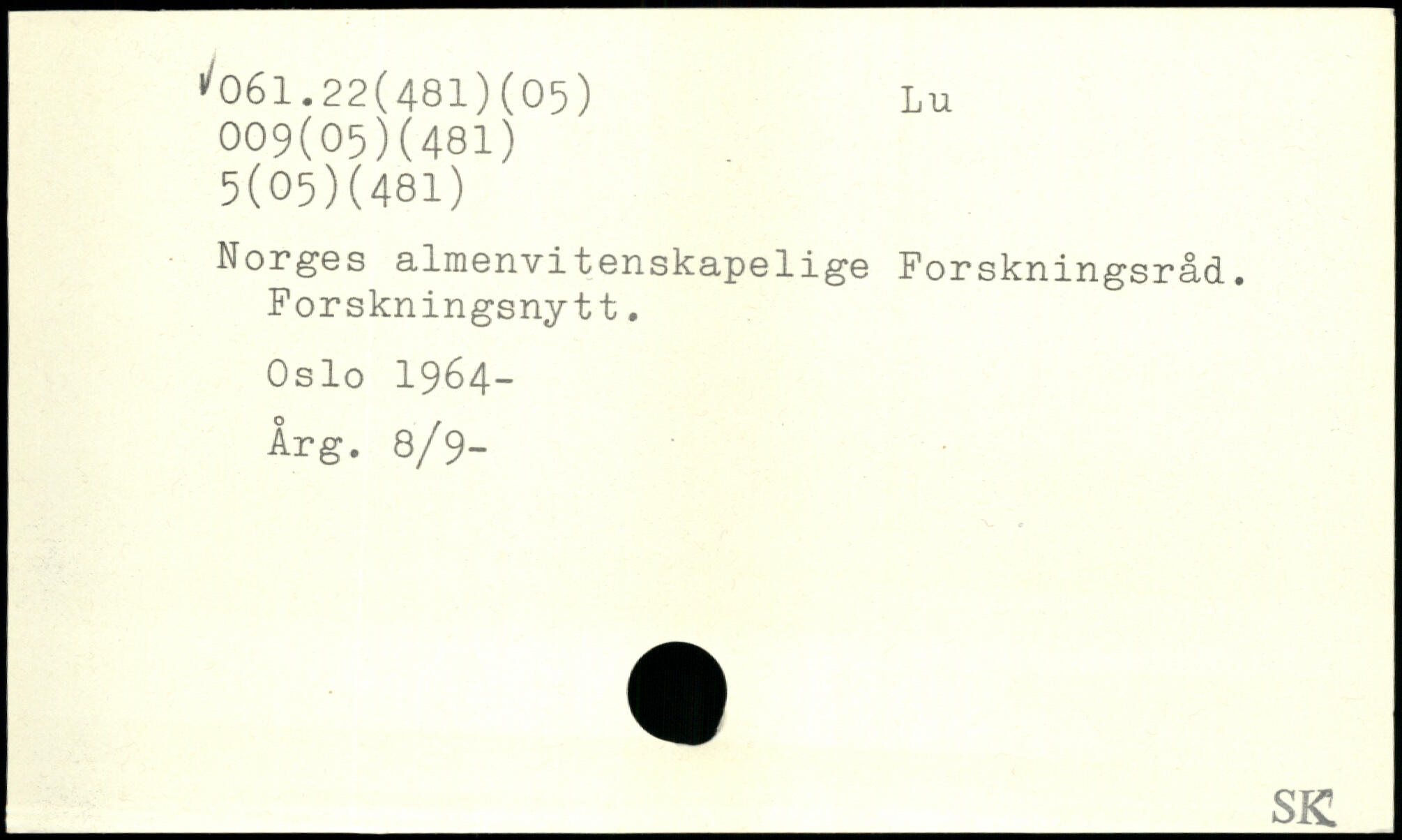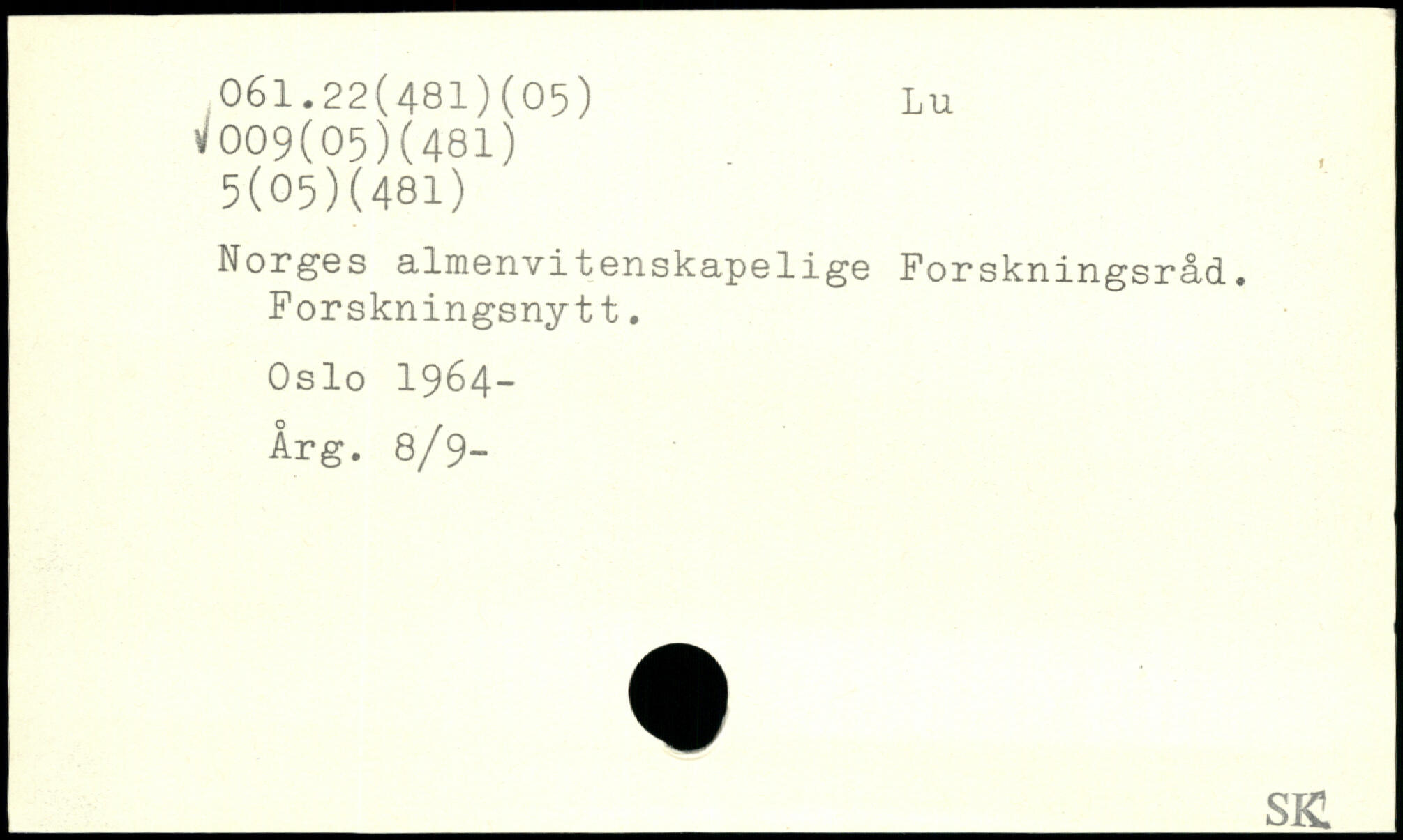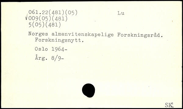 Norges almenvitenskapelige Forskningsråd. Forskningsnytt. Oslo 1964- Årg. 8/9-