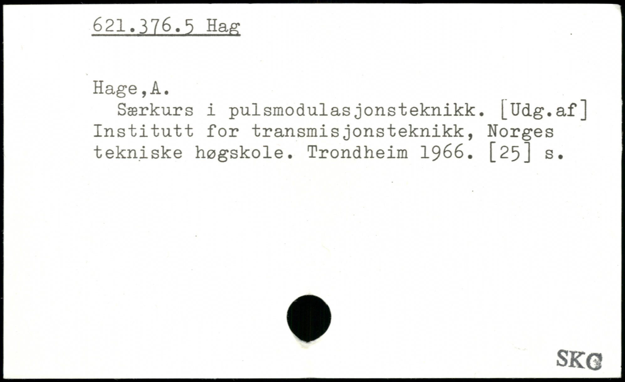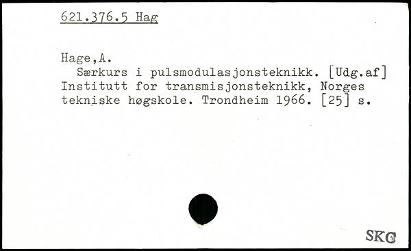 Særkurs i pulsmodulasjonsteknikk. [Udg.af] Institutt for transmisjonsteknikk, Norges tekniske høgskole.