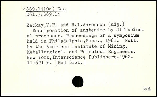 Zaekay,V.F. and H.I.Aaronson (udg.) Decomposition of austenite by diffusion-al processes. Proceedings of a symposium held in