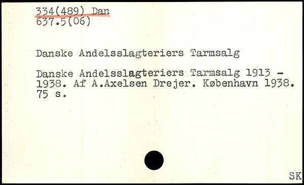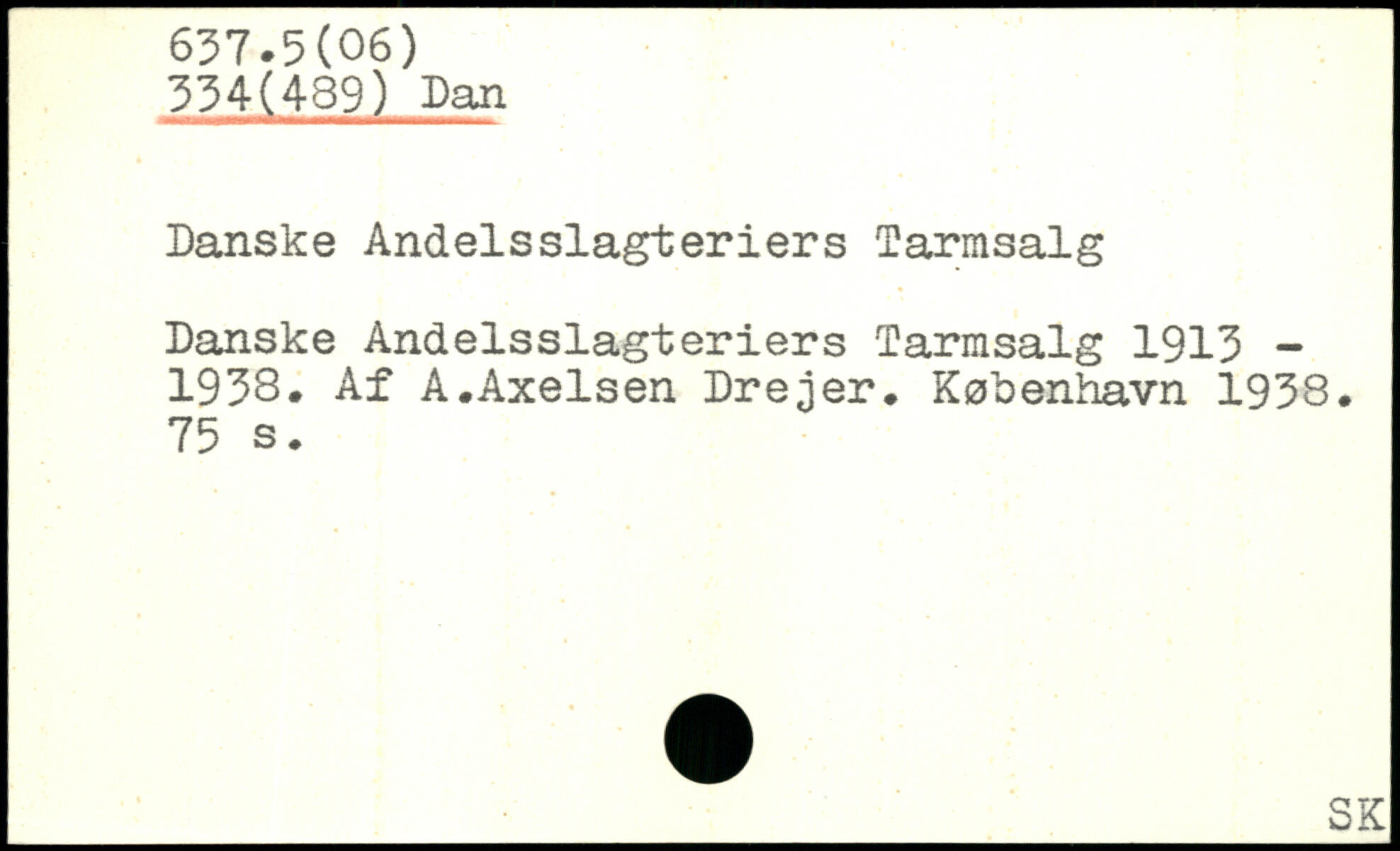 Danske Andelsslagteriers Tarmsalg Danske Andelsslagteriers Tarmsalg 1913 -1938. Af A.Axelsen Drejer.