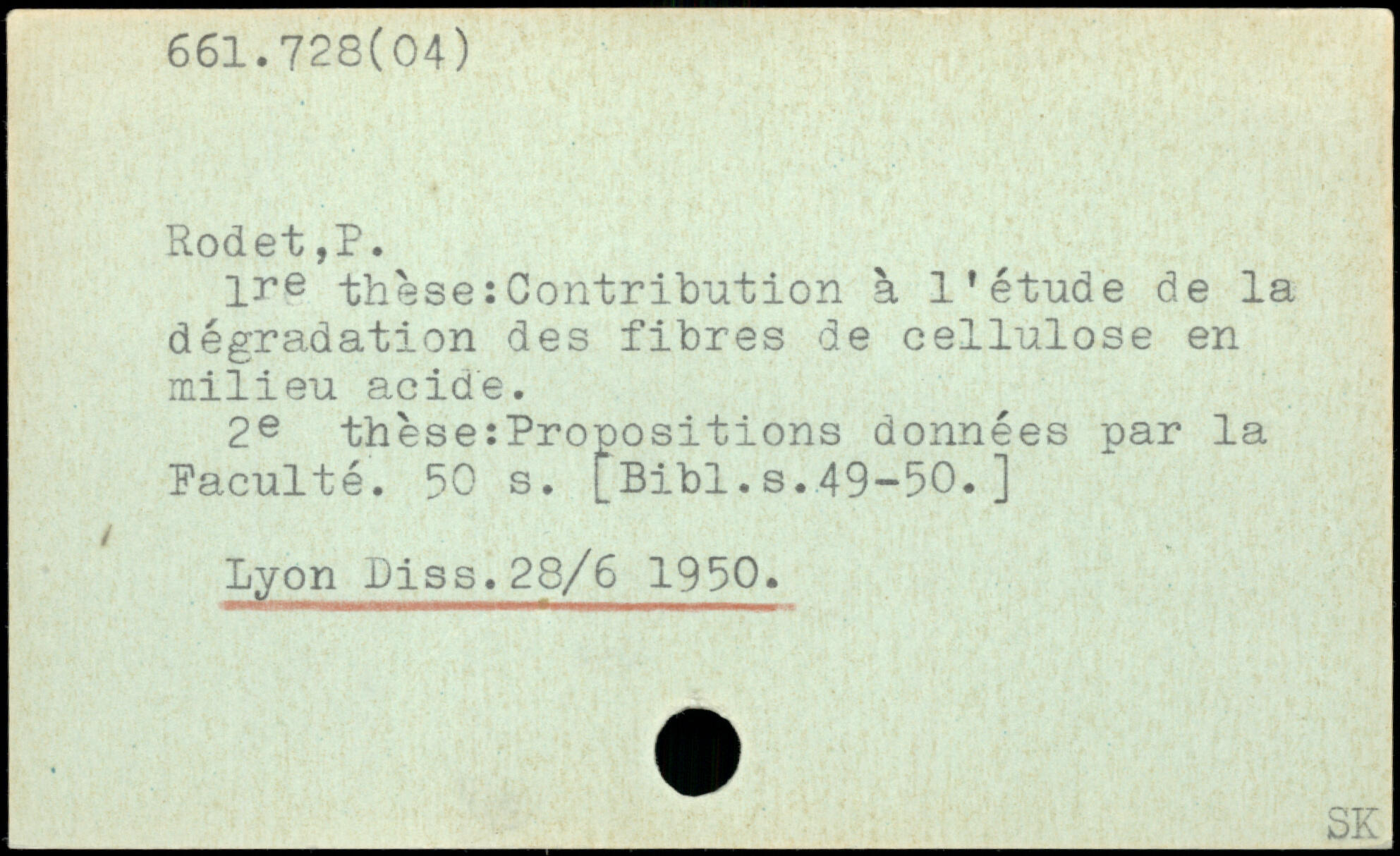 ire thèse: Contribution à l’étude de la dégradation des fibres de cellulose en milieu acide. 2e thèse:Propositions données par la Paculté.
