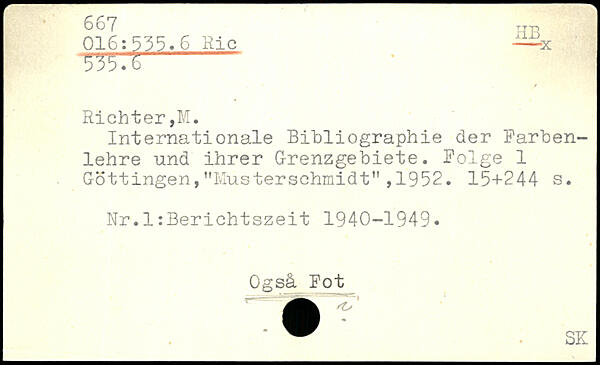 Internationale Bibliographie der Farbenlehre und ihrer Grenzgebiete. Folge 1 Göttingen,"MusterSchmidt",1952.