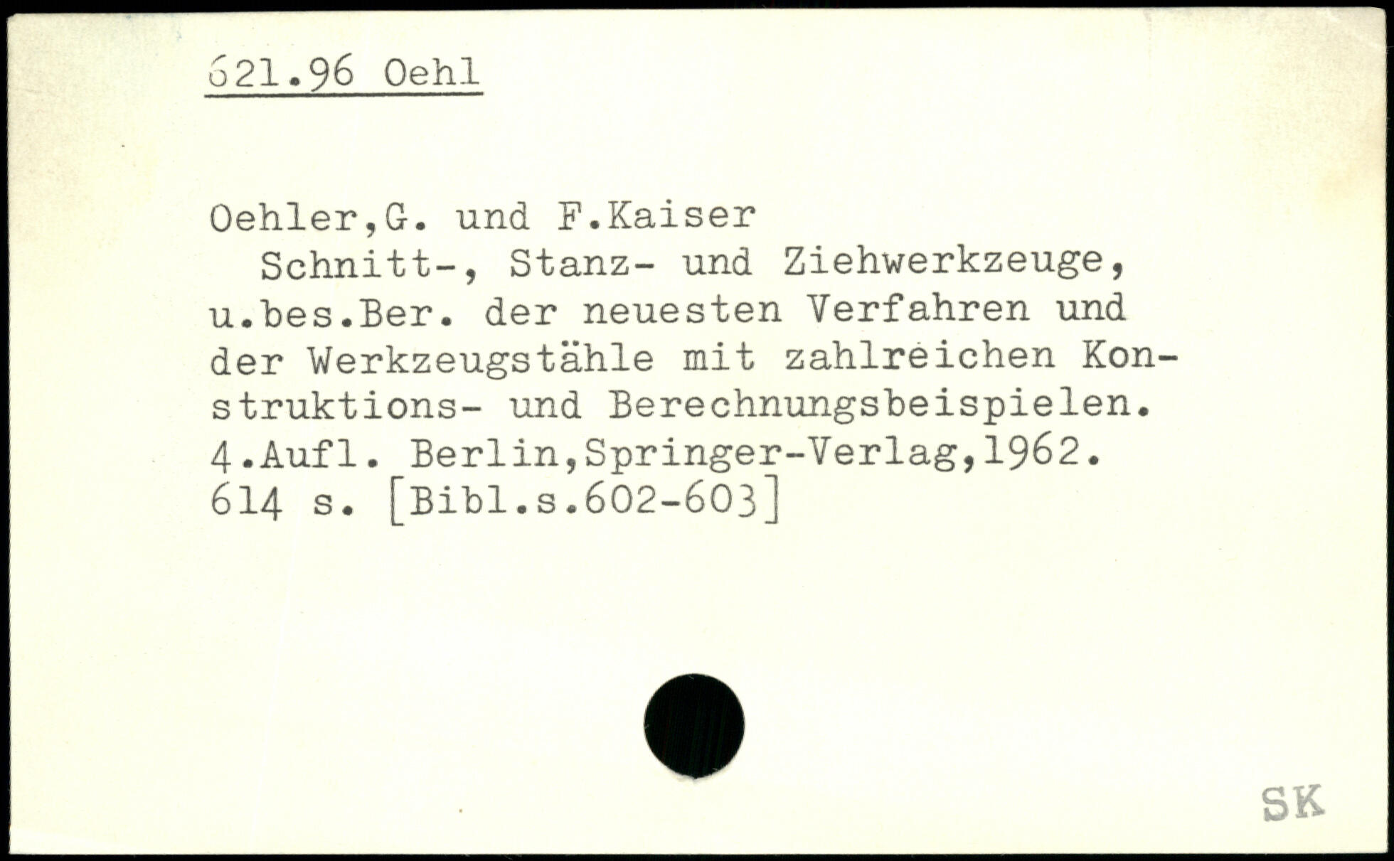 Schnitt-, Stanz- und Ziehwerkzeuge, u.hes.Ber. der neuesten Verfahren und der Werkzeugstähle mit zahlreichen Konstruktions- und Berechnungsbeispielen.