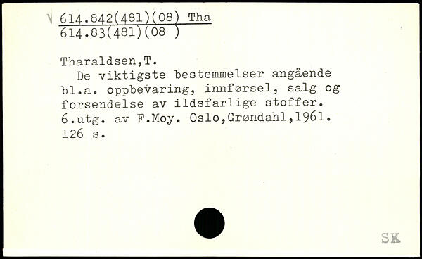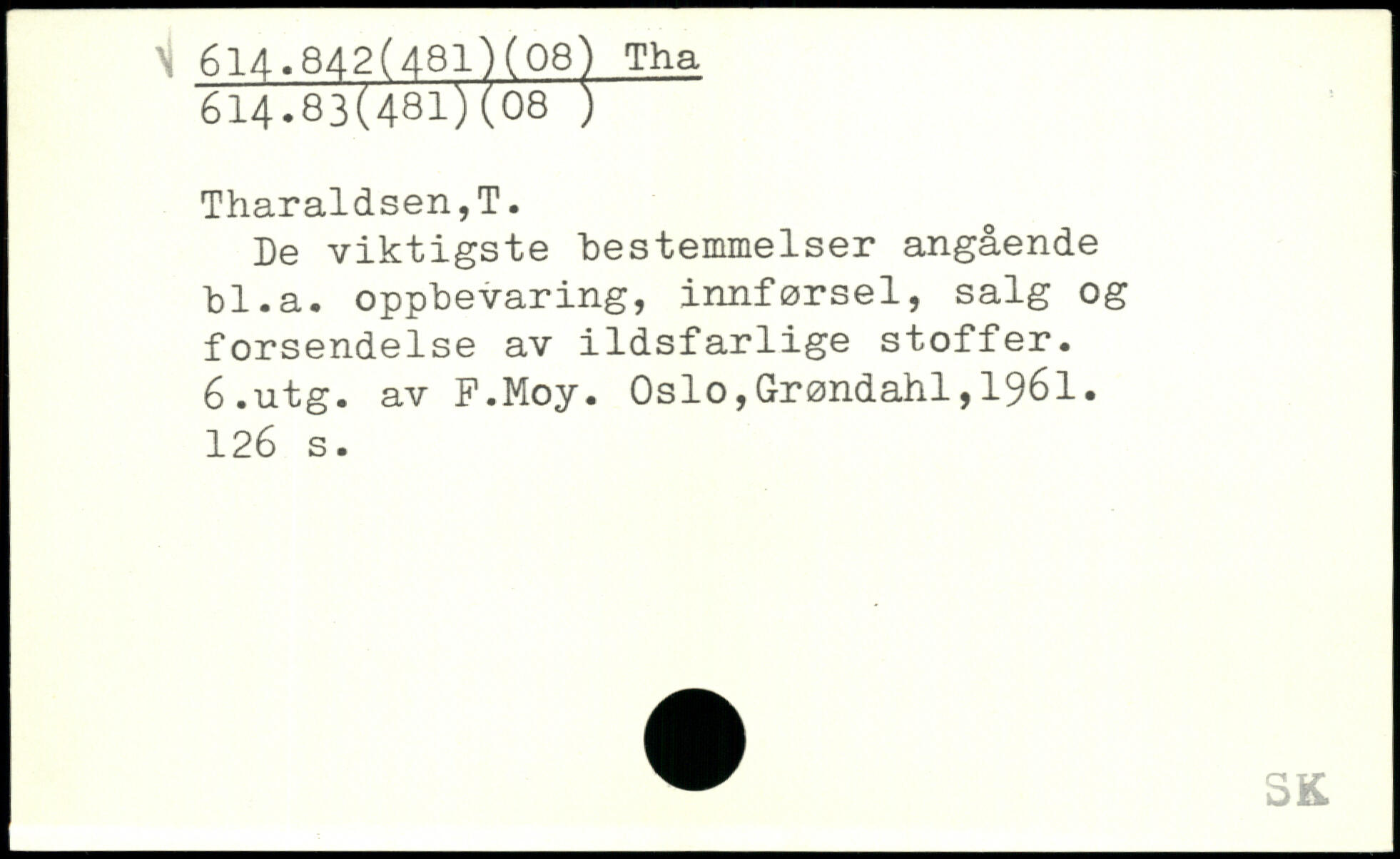 De viktigste hestemmelser angående bl.a. opphevaring, innførsel, salg og I forsendelse av ildsfarlige stoffer. é.utg. av F.Moy.