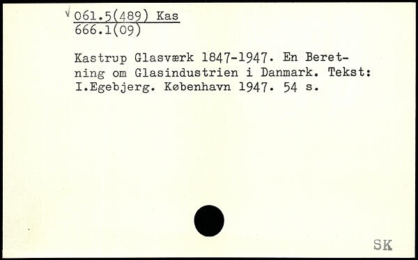 Kastrup Glasværk 1847-1947. En Beretning om Glasindustrien i Danmark. Tekst: I.Egebjerg.