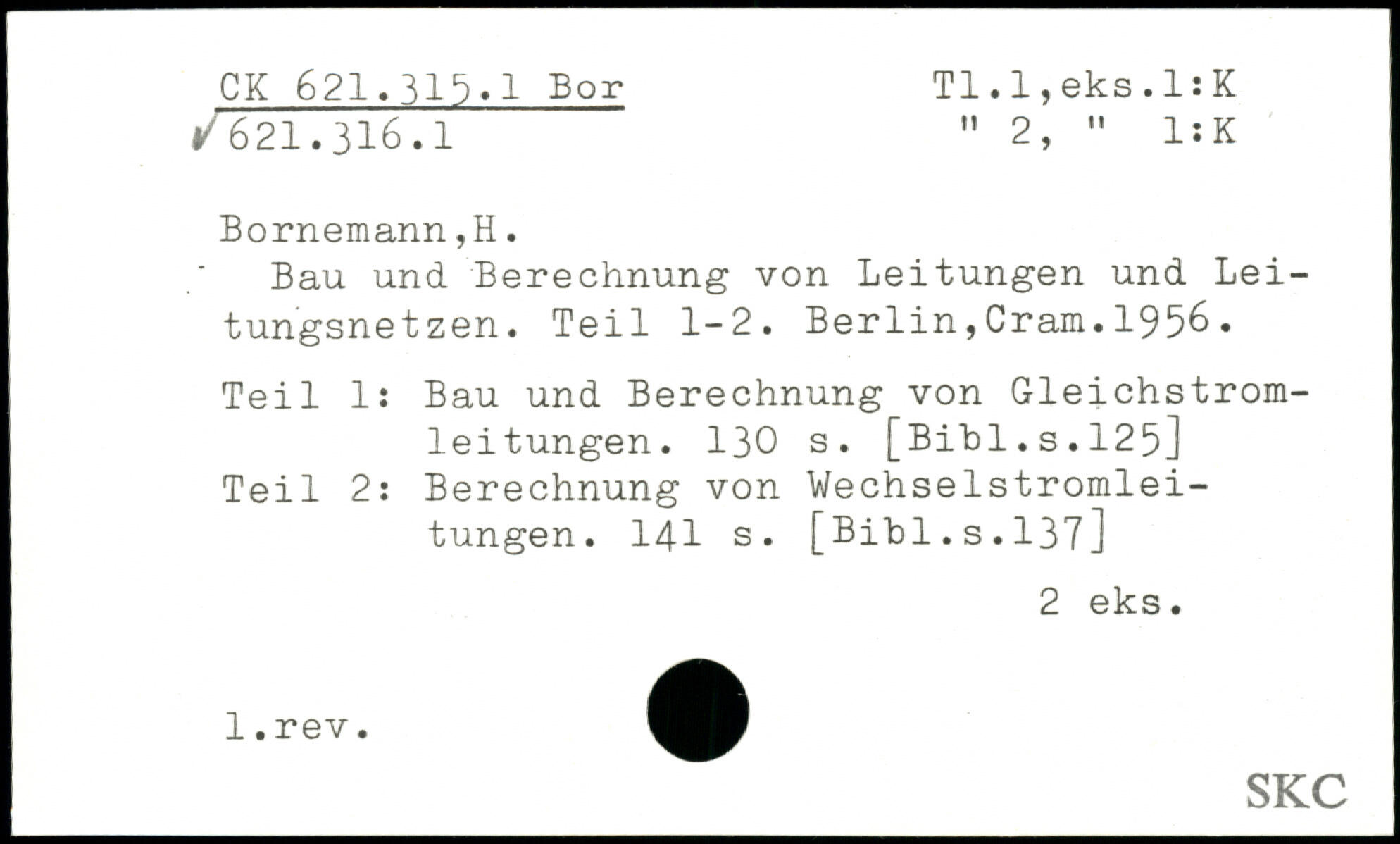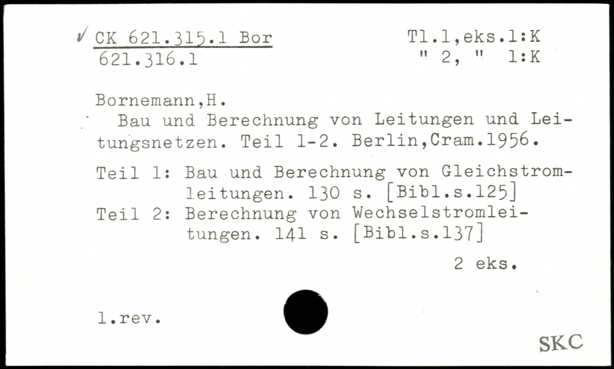 Bau und Berechnung von Leitungen und Leitungsnetzen. Teil 1-2. Berlin,Cram.1956. Teil 1: Bau und Berechnung von Gleichstromleitungen.