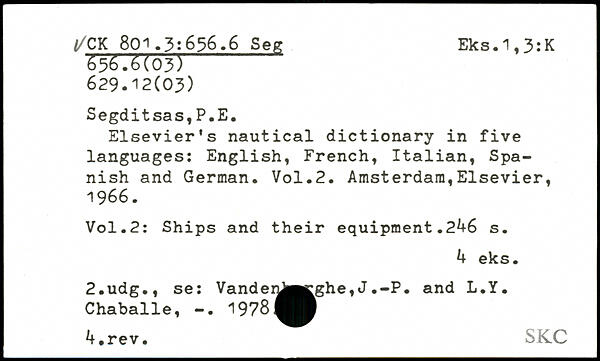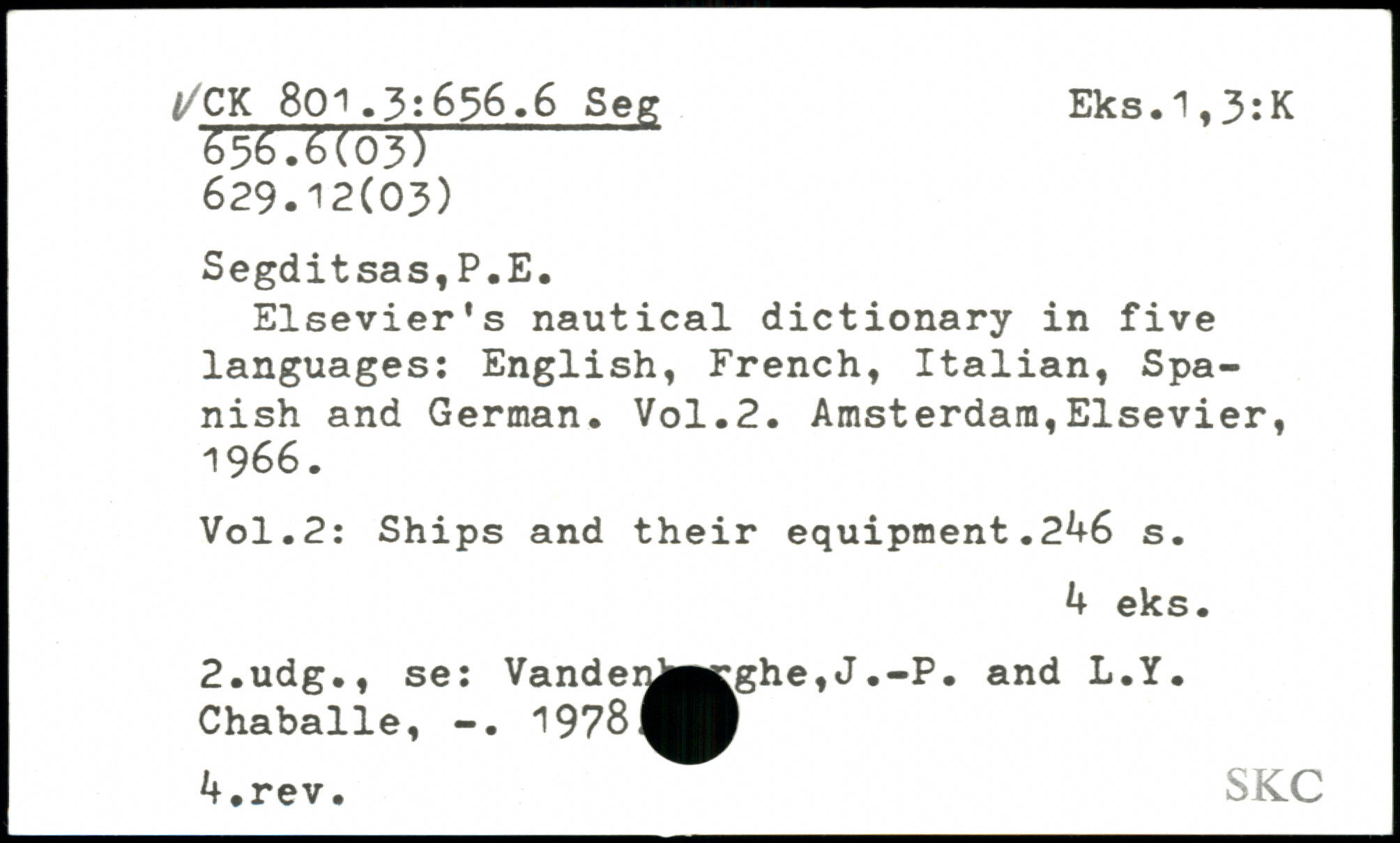 Elsevier's nautical dictionary in five languages: English, French, Italian, Spanish and German.