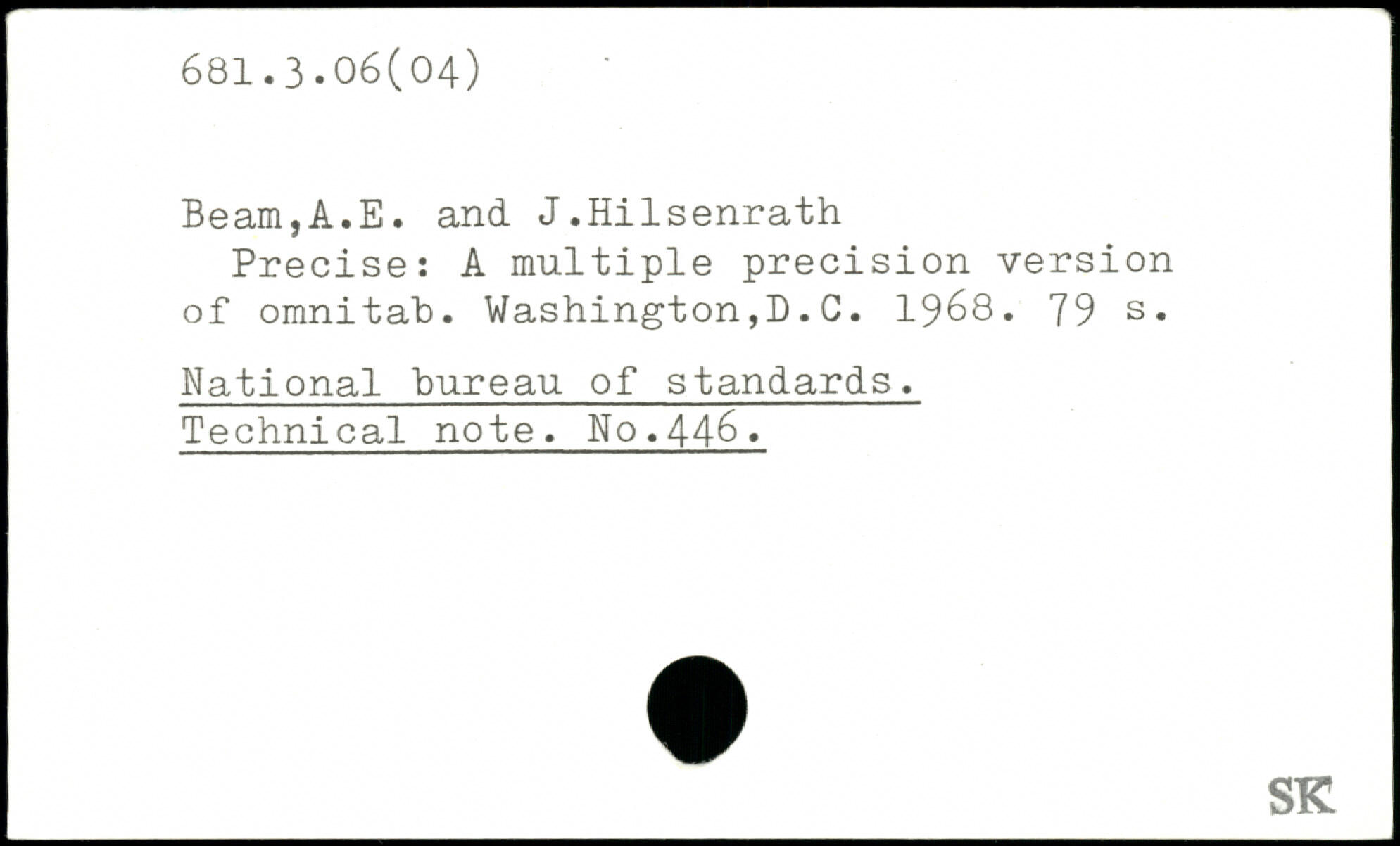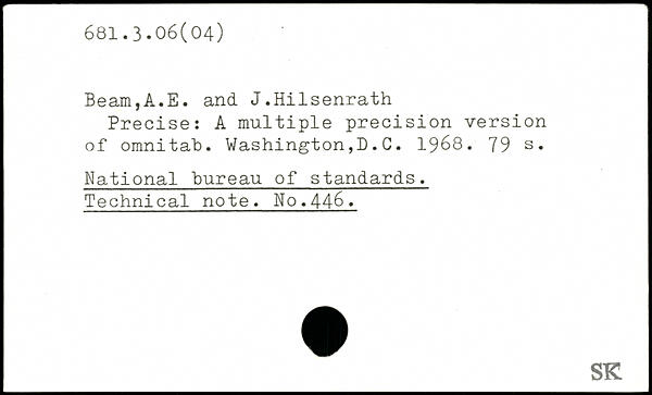 Precise: A multiple precision Version of omnitab. Washington,D.G. 1968.