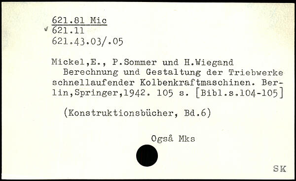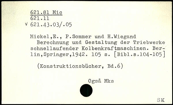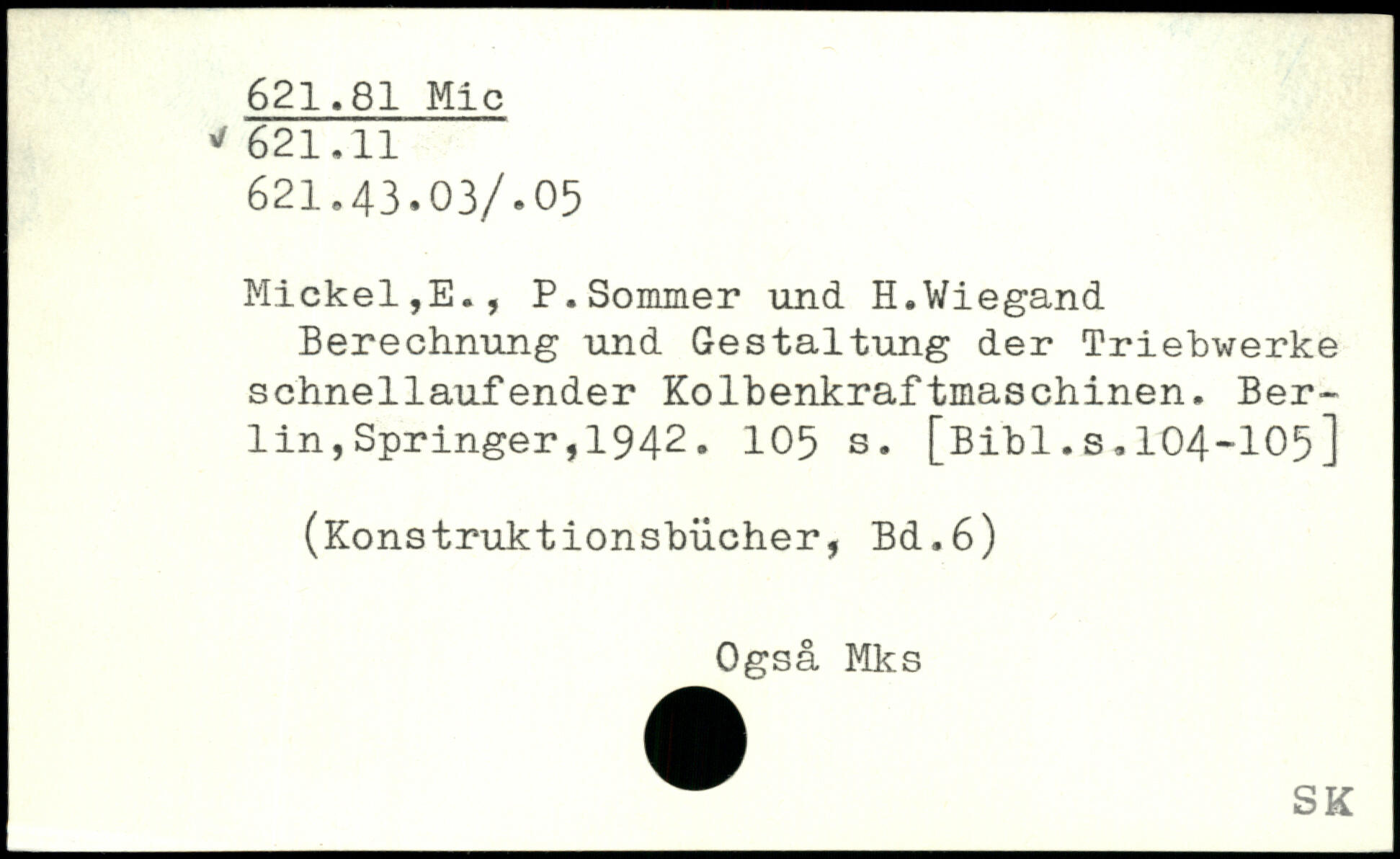 Berechnung und Gestaltung der Triebwerke schnellaufender Kolbenkraftmaschinen.