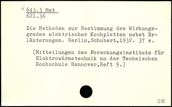 Die Methoden zur Bestimmung des Wirkungsgrades elektrischer Kochplatten nebst Erläuterungen,.