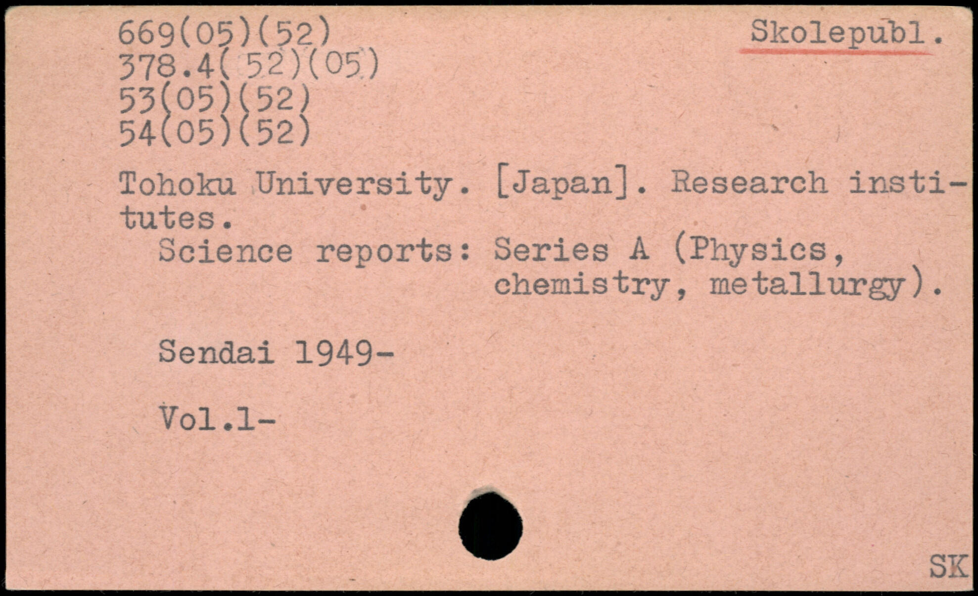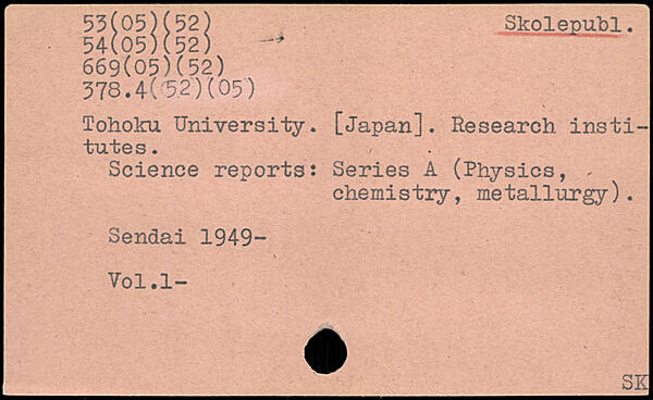 Tohoku University. [Japan]. Research insti-tutes. Science reports: Series A (Physics, chemistry, metallurgy). Sendai 1949-Vol.l- _ ^_SK