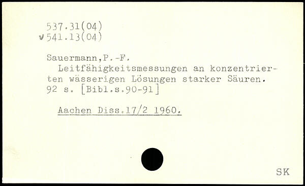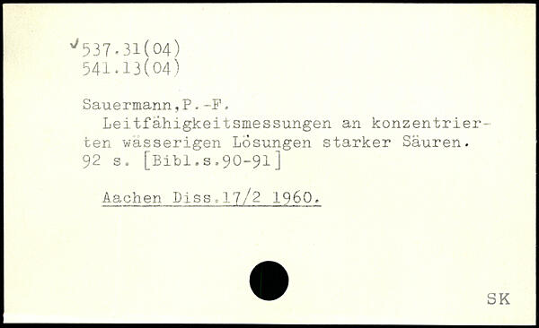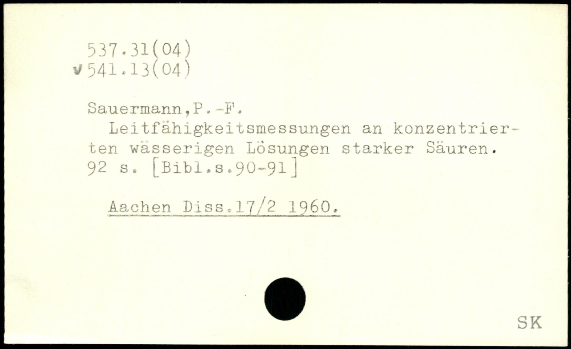 Leitfähigkeitsmessungen an konzentrierten wässerigen Losungen starker Säuren.