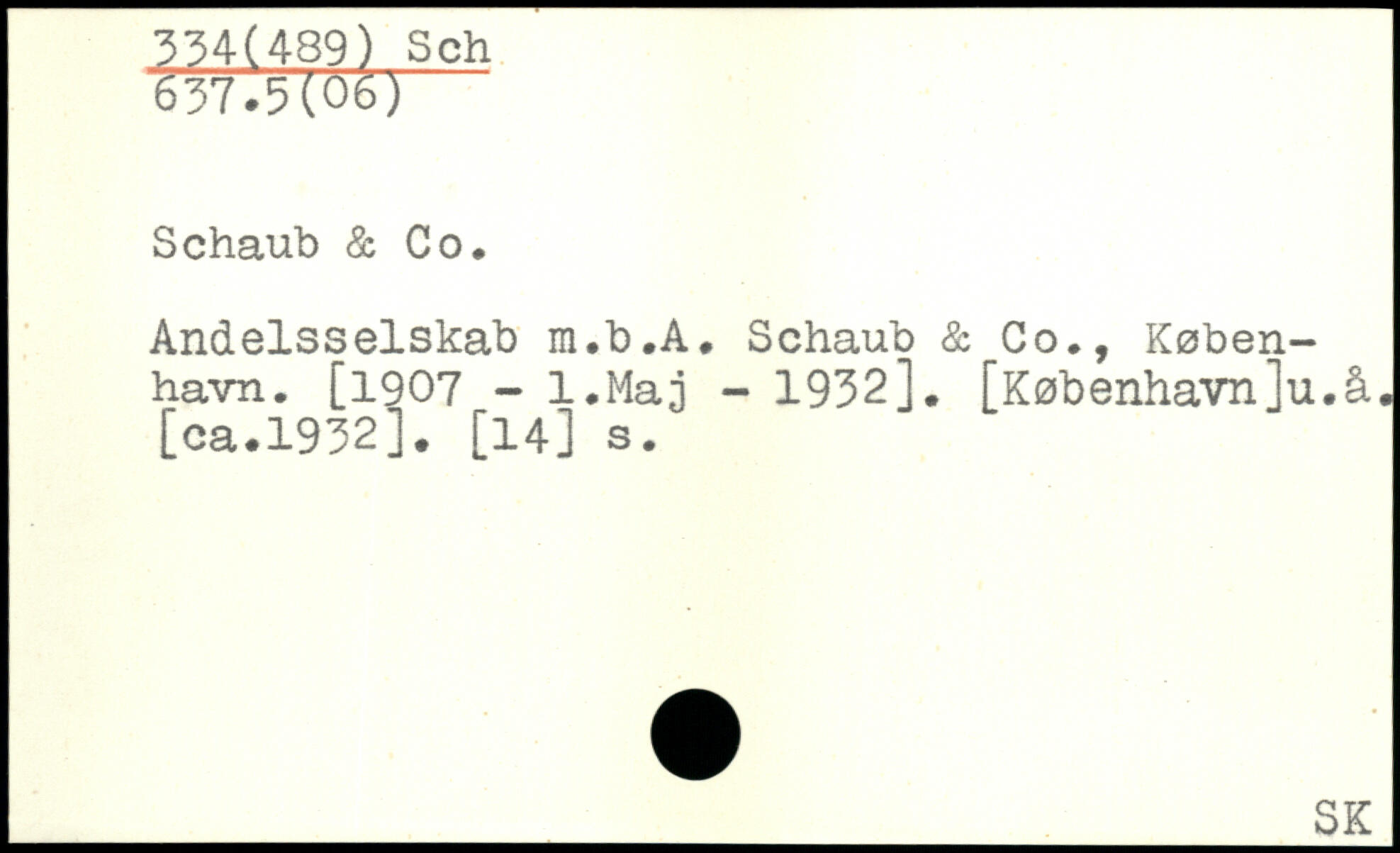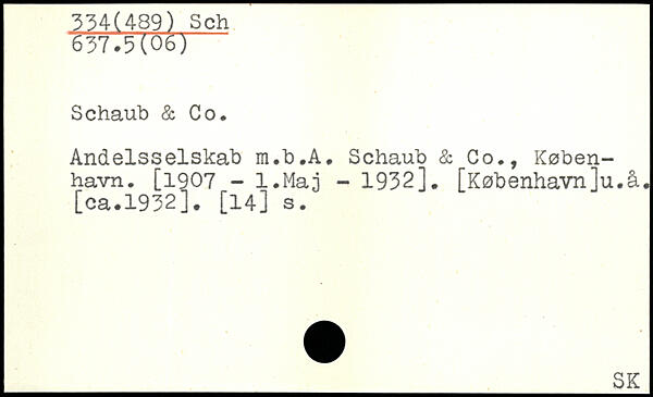 Schaub & Co. Andelsselskab m.b.A. Schaub & Co., København. [1907 - l.Maj - 1932].