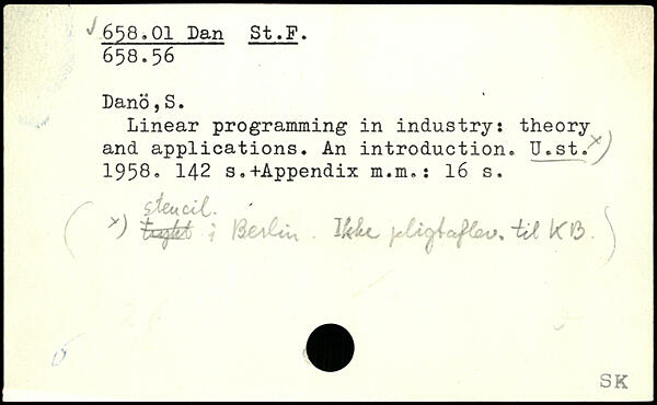 Linear programming in industry: theory and applications. An introduction. U.st.\ 1958.