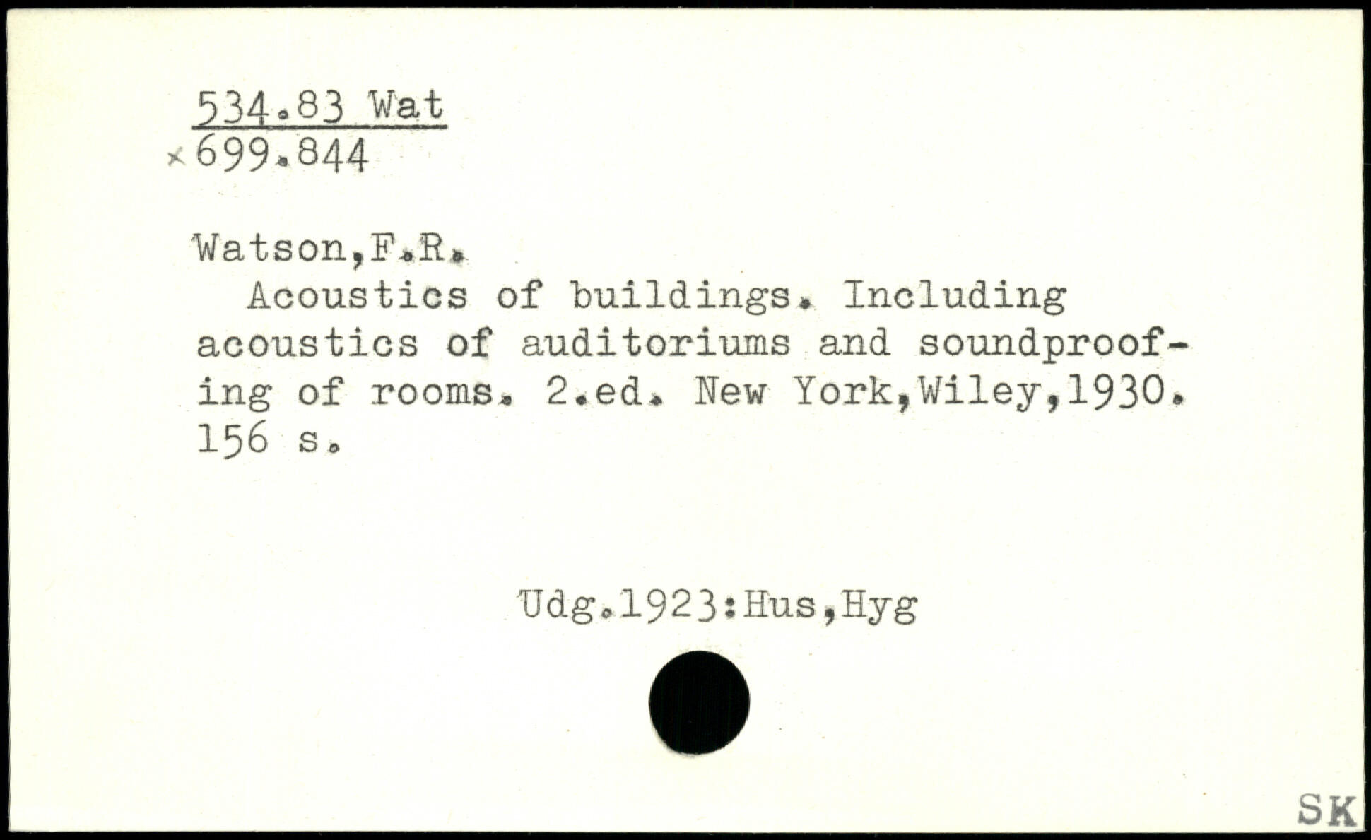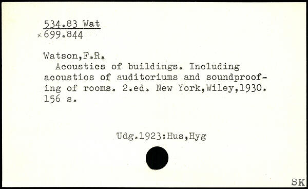 Acoustics of buildings. Including acoustics of auditoriums and soundproofing of rooms