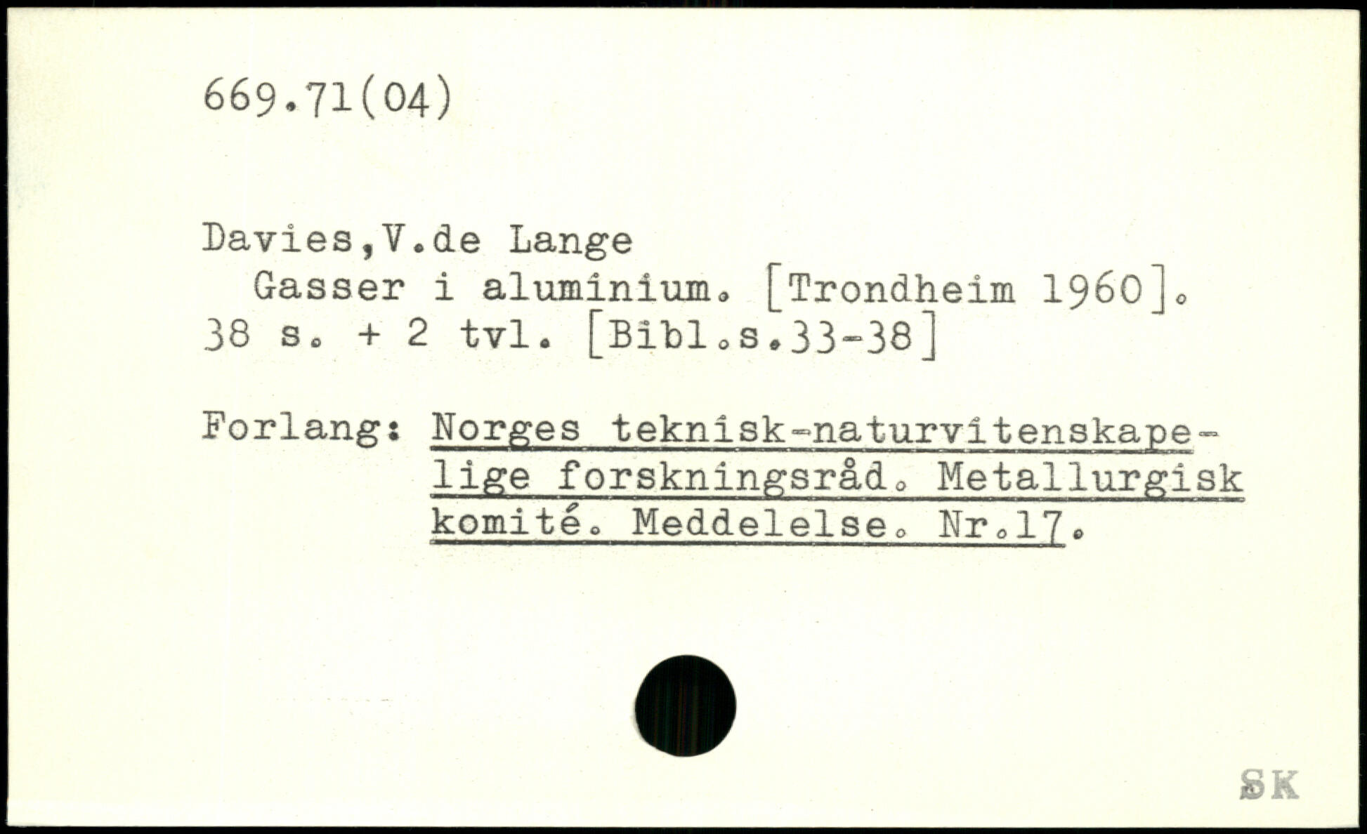 Davies,V.de Lange Gasser i aluminium