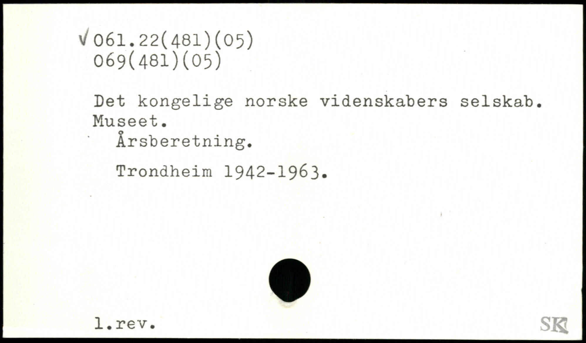 Det kongelige norske videnskabers selskab. Museet. Årsberetning.