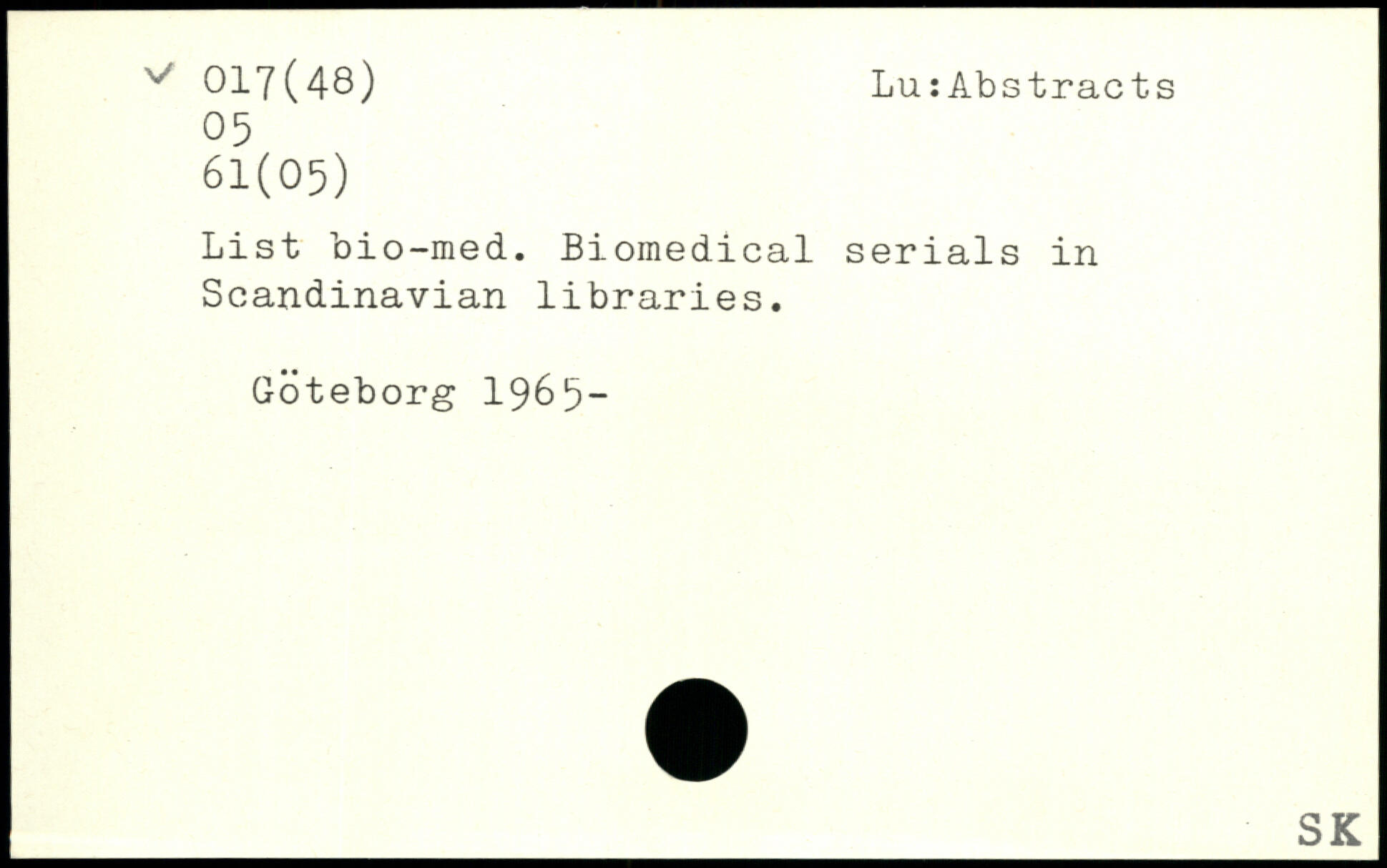 List bio-med. Biomedical serials in Scandinavian libraries. Goteborg 1965-