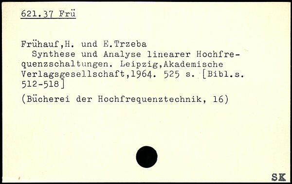 Synthese und Analyse linearer Hochfrequenz schaltungen.